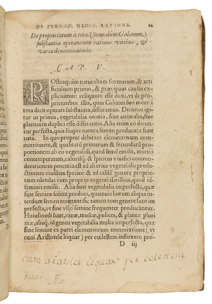With several near-contemporary ink owners inscriptions by the pharmacist Joseph Nicolau (some in the device and the first initial); additional 18th-century ink owners inscriptions by Luís Ferrari; numerous ink annotations on the endpapers and throughout. Browning and water stains throughout, occasional mostly marginal worming, several paper defects along the edges. Binding wrinkled and rubbed. Baudrier X, 223; BMC STC French, p. 145; Ferchl 428 ("Leiden" in error); Gültingen VIII, 95, 158; Hoefer XV, 367; NLM WZ 240 ("imperfect: p. 177 mutilated"); USTC 151071; Wellcome 5300; WorldCat 14307014; not in Adams; Durling; Osler; Waller.