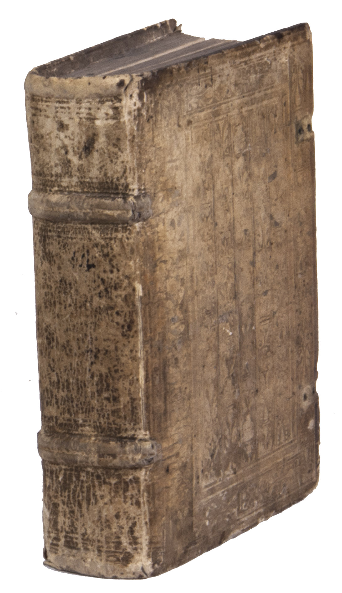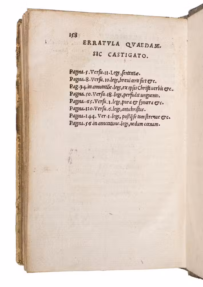 Ad 1 with some of the text underlined. Ad 2 with manuscript annotations in the margins. Ad 3 with some marginal annotations and some of the text underlined. Ad 4 with a manuscript inscription on the title page and a few annotations in the margins. The binding shows signs of wear, some small pieces of leather missing on the back board revealing the wood below, remnants of fastenings along the fore-edge, ads 2 and 3 with some minor (worm) holes in the paper, barely affecting the text, some staining and browning in places. Otherwise in good condition. Ad 1: USTC 650175 (7 copies); Vander Haeghen I, 80; VD 16 E 2772; Ad 2: Bezzel 1131; VD 16 E 3041 (and VD 16 E 3659); not in the USTC; Ad 3: VD 16 E 3151; not in the USTC; Ad 4: VD 16 H 2166; this ed. not in USTC.