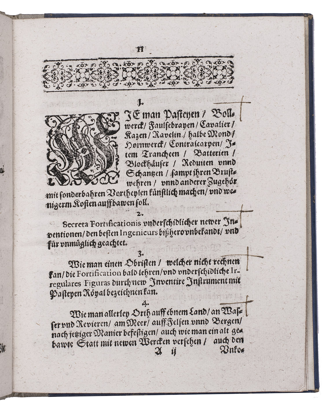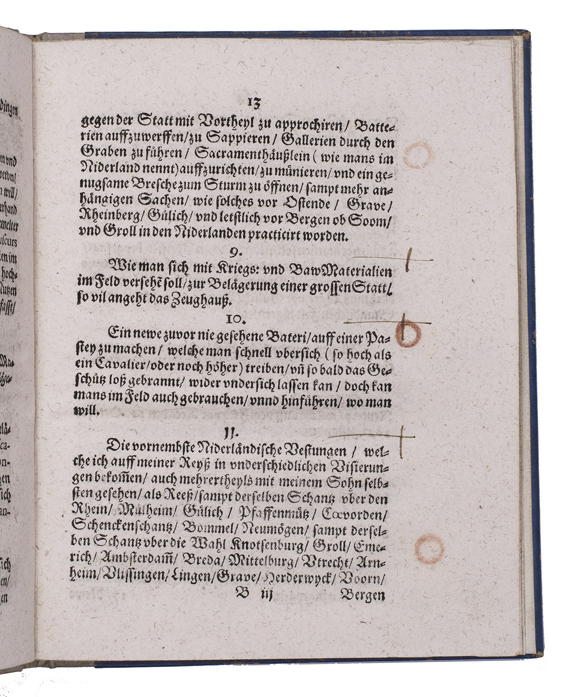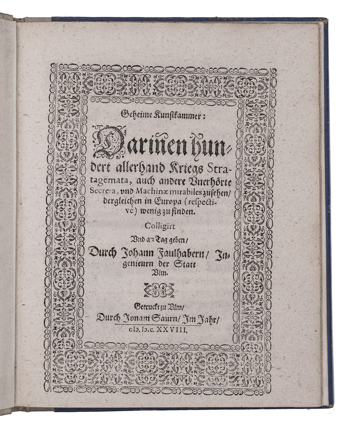 Two different readers have checked off items in the catalogue, perhaps indicating those in their own collections. In very good condition. Bircher A 4515; VD 17, 23:000295W (3 copies); not in Balsiger; Berlin Kat.; Jammes, Cabinets de curiosités; Murray; Sloos, Warfare and the age of printing; for Faulhaber: DSB IV, pp. 549-552.