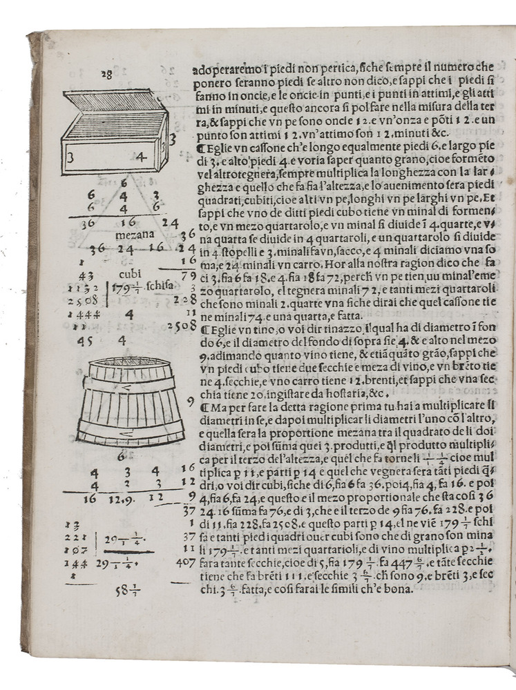 Slightly browned, with a few marginal water stains and some occasional foxing and minor stains. Binding only slightly worn at the extremities. Overall in good condition. A. Gallozzi, "Francesco Feliciano de Scolari" in: Distiguished figures in descriptive geometry... (2016), pp. 53- 65; Riccardi I, L-col. 22; D.E. Smith, Rara arithmetic, pp. 146-148.