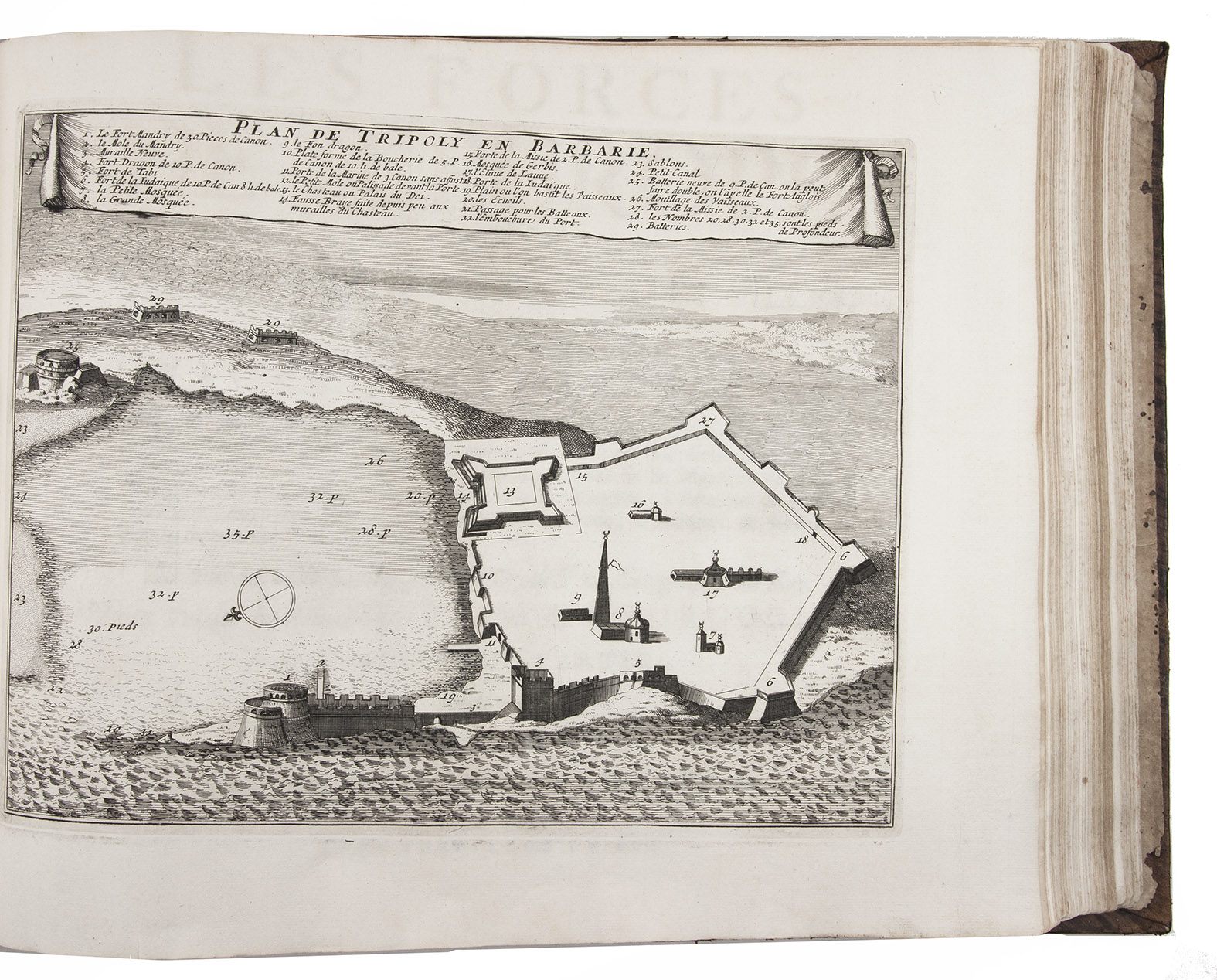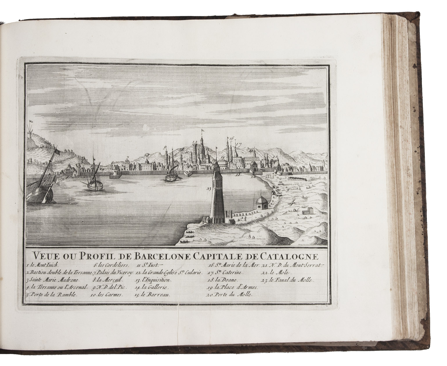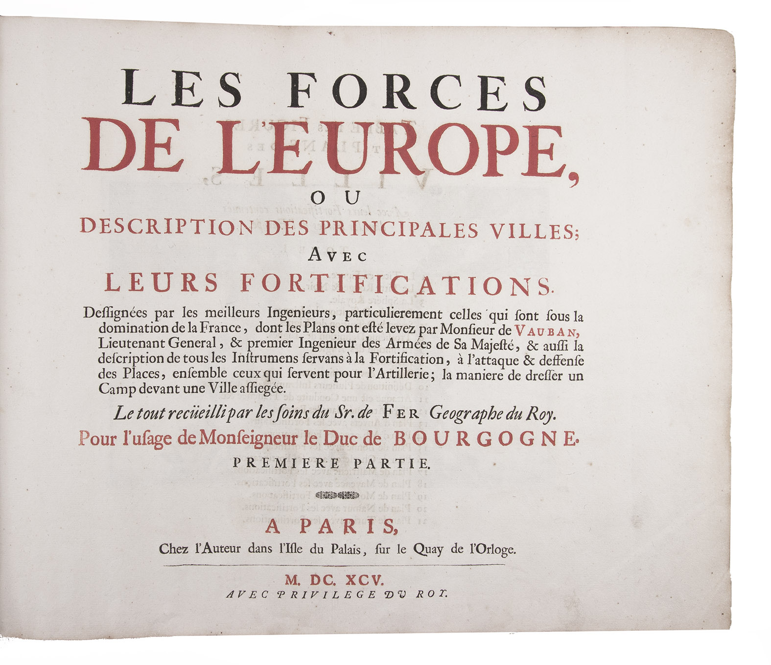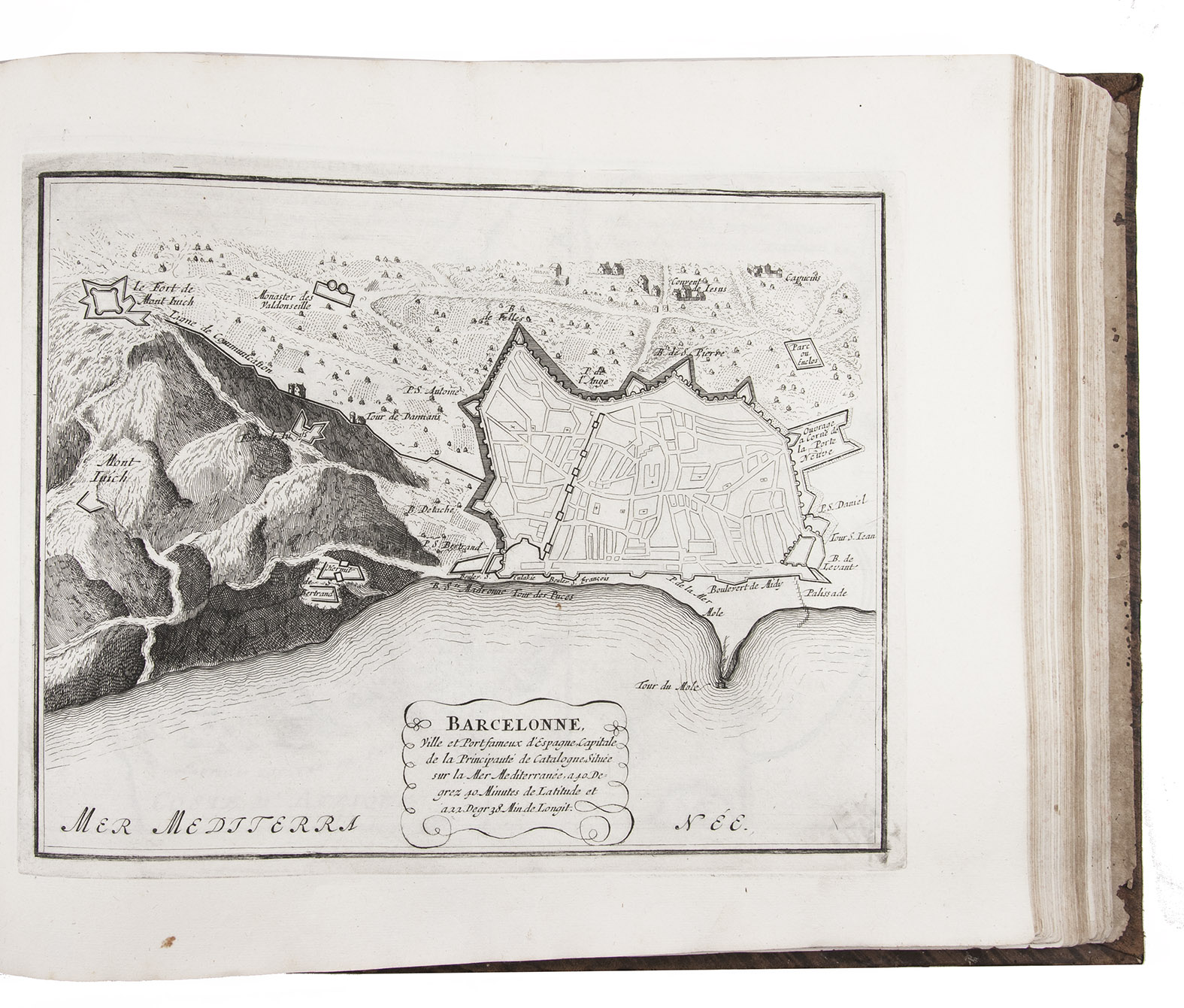 Splendid atlas of fortifications of the cities of Europe (plus Malta and some other Mediterranean sites), combined with a maritime atlas of the French coasts, published by Pieter Mortier (1661-1711). Both are based on the similar publications of Nicolas de Fer (1646-1720) and falsely indicate that they were published by him.