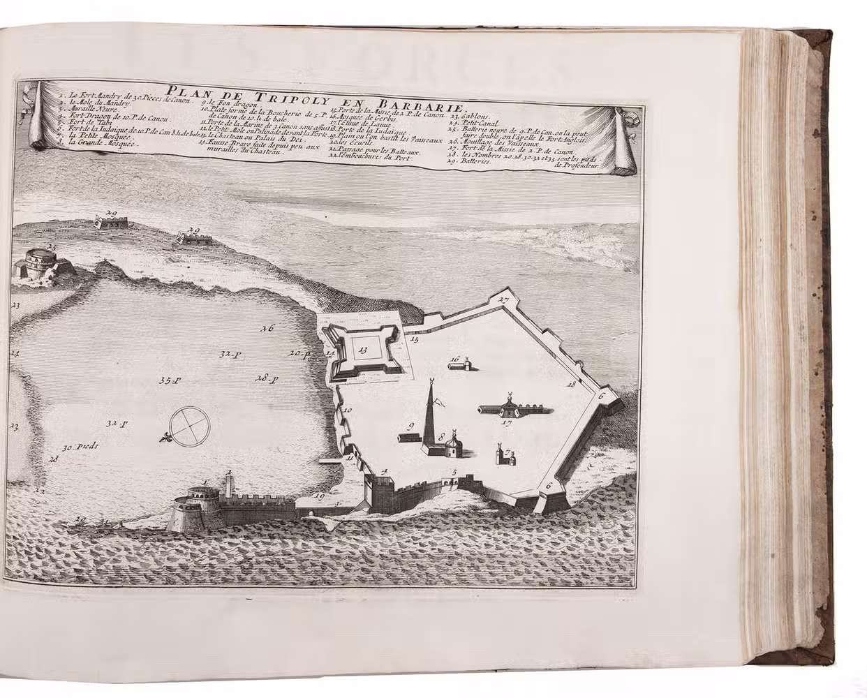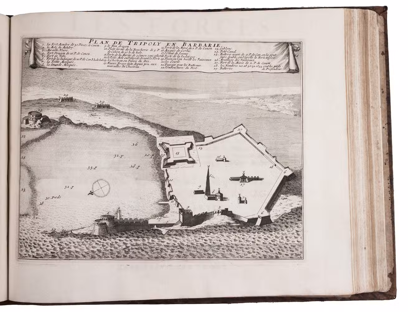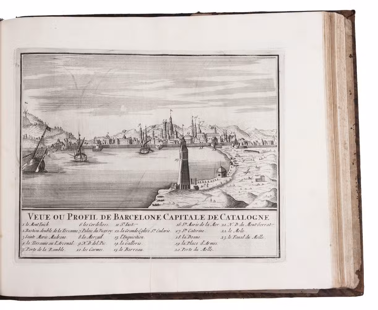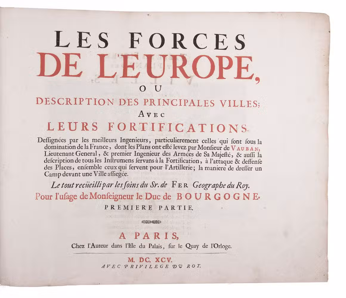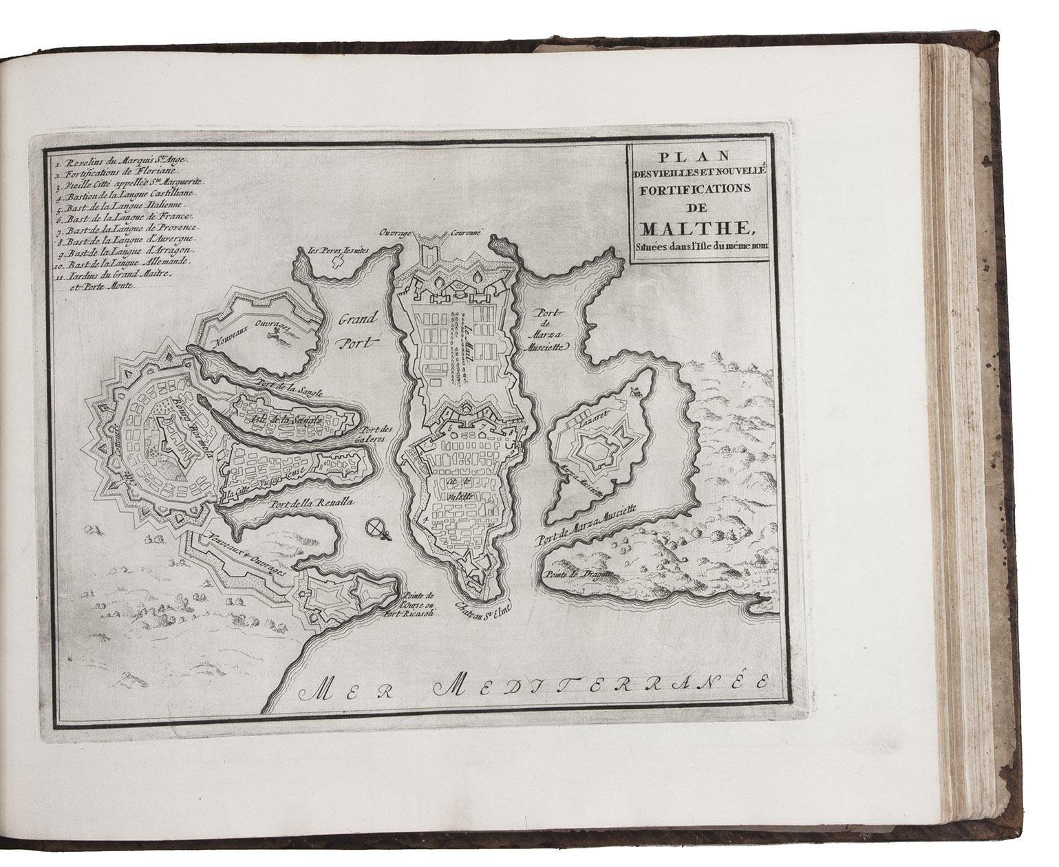 Splendid atlas of fortifications of the cities of Europe (plus Malta and some other Mediterranean sites), combined with a maritime atlas of the French coasts, published by Pieter Mortier (1661-1711). Both are based on the similar publications of Nicolas de Fer (1646-1720) and falsely indicate that they were published by him.