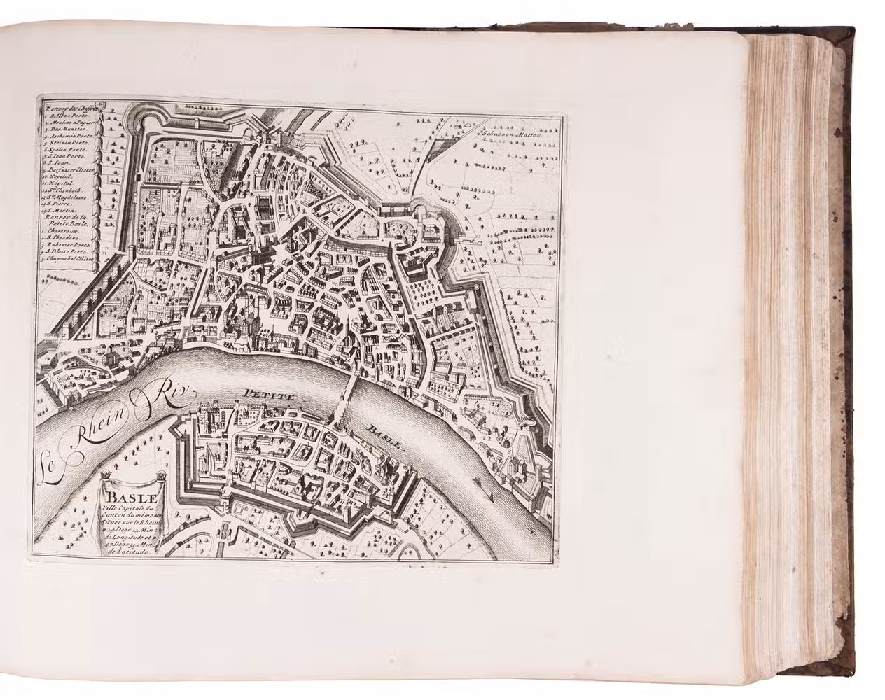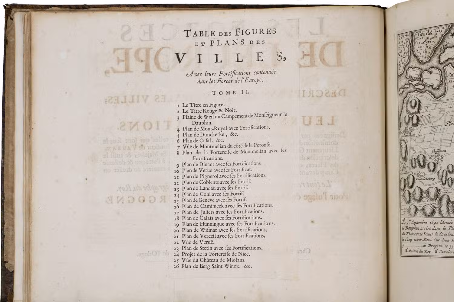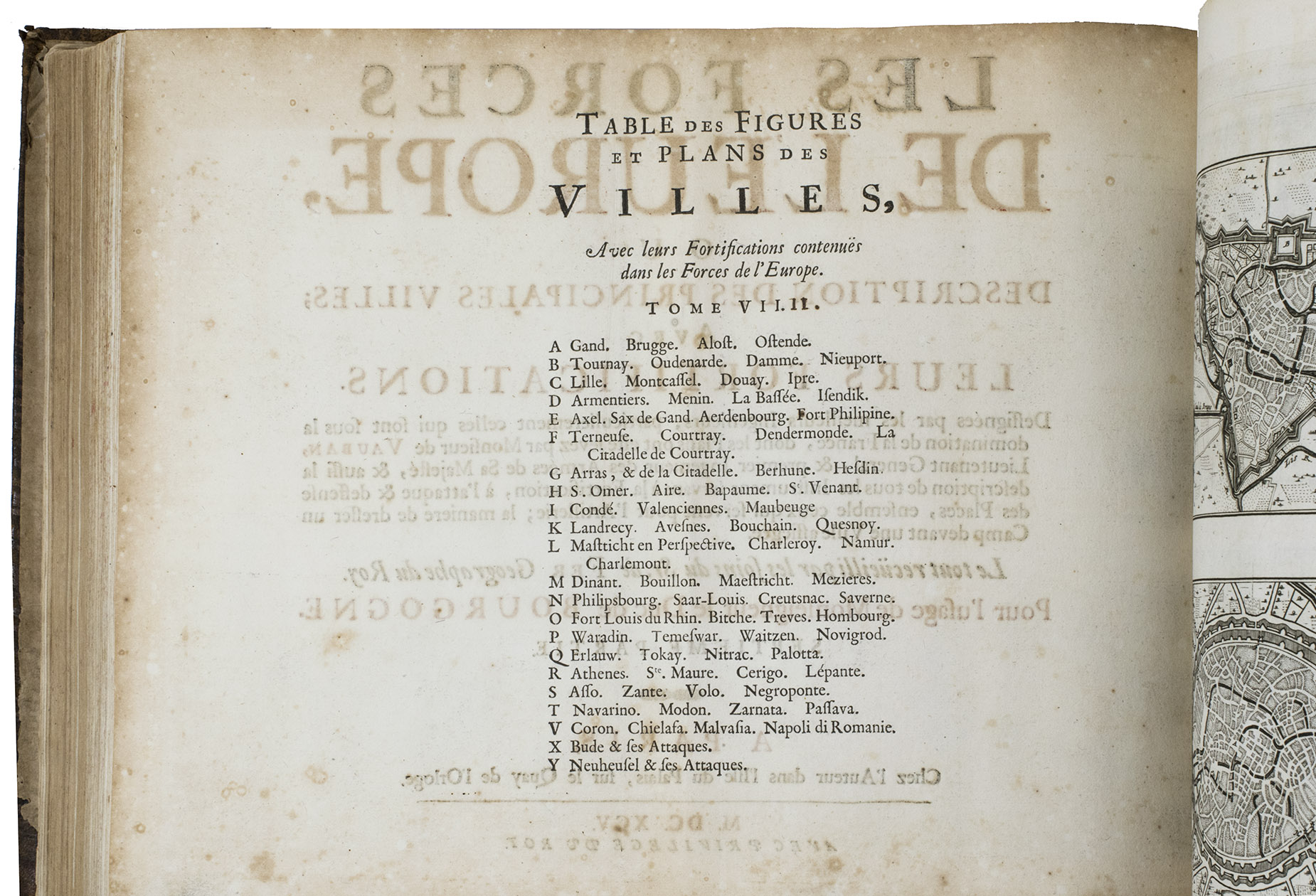 Ad 1: The atlas of fortified cities of Europe. Many of the plans show the work of the greatest 17th-century masters of the art and science of fortification, including Samuel Marolois, Simon Stevin and Sébastien Le Prestre de Vauban. The last two parts contain primarily smaller maps, printed 4 to the page.