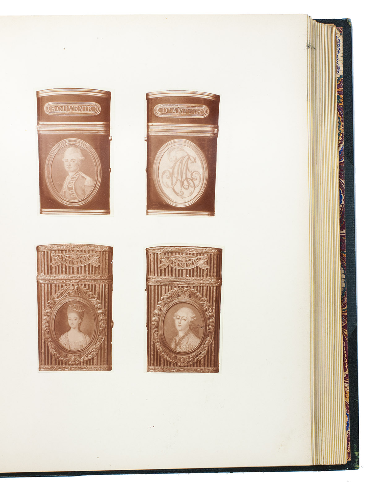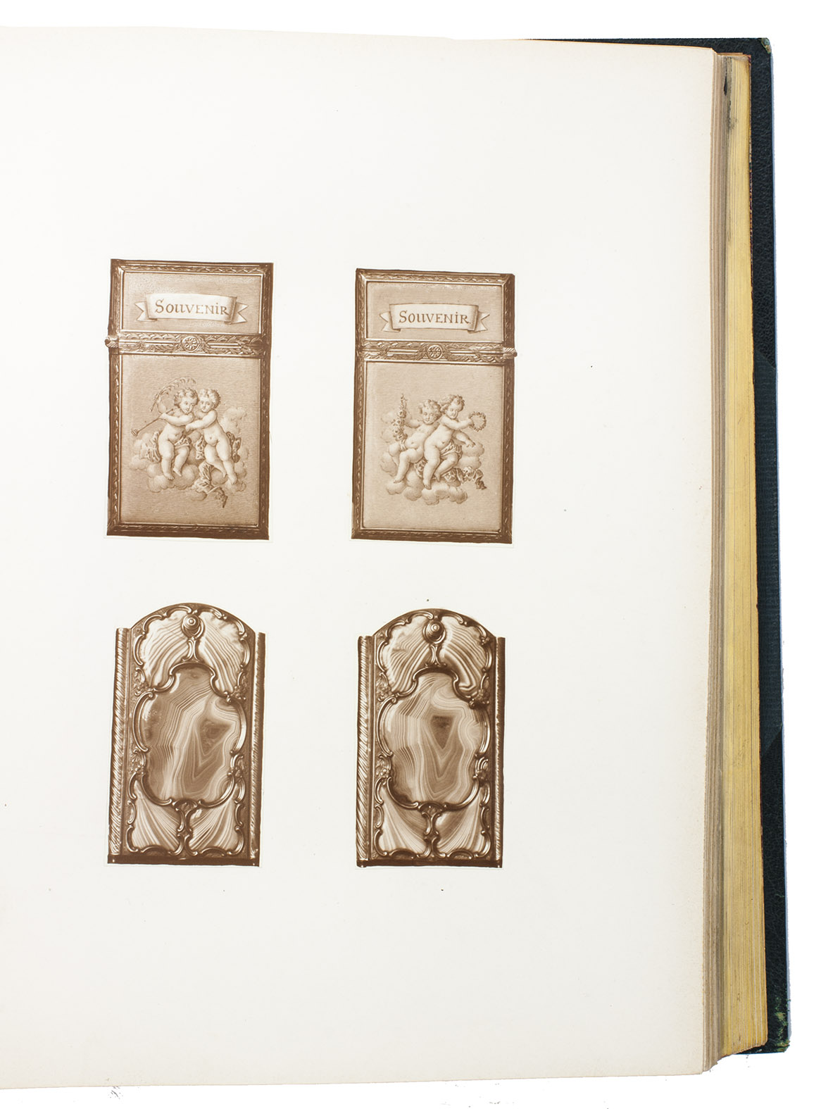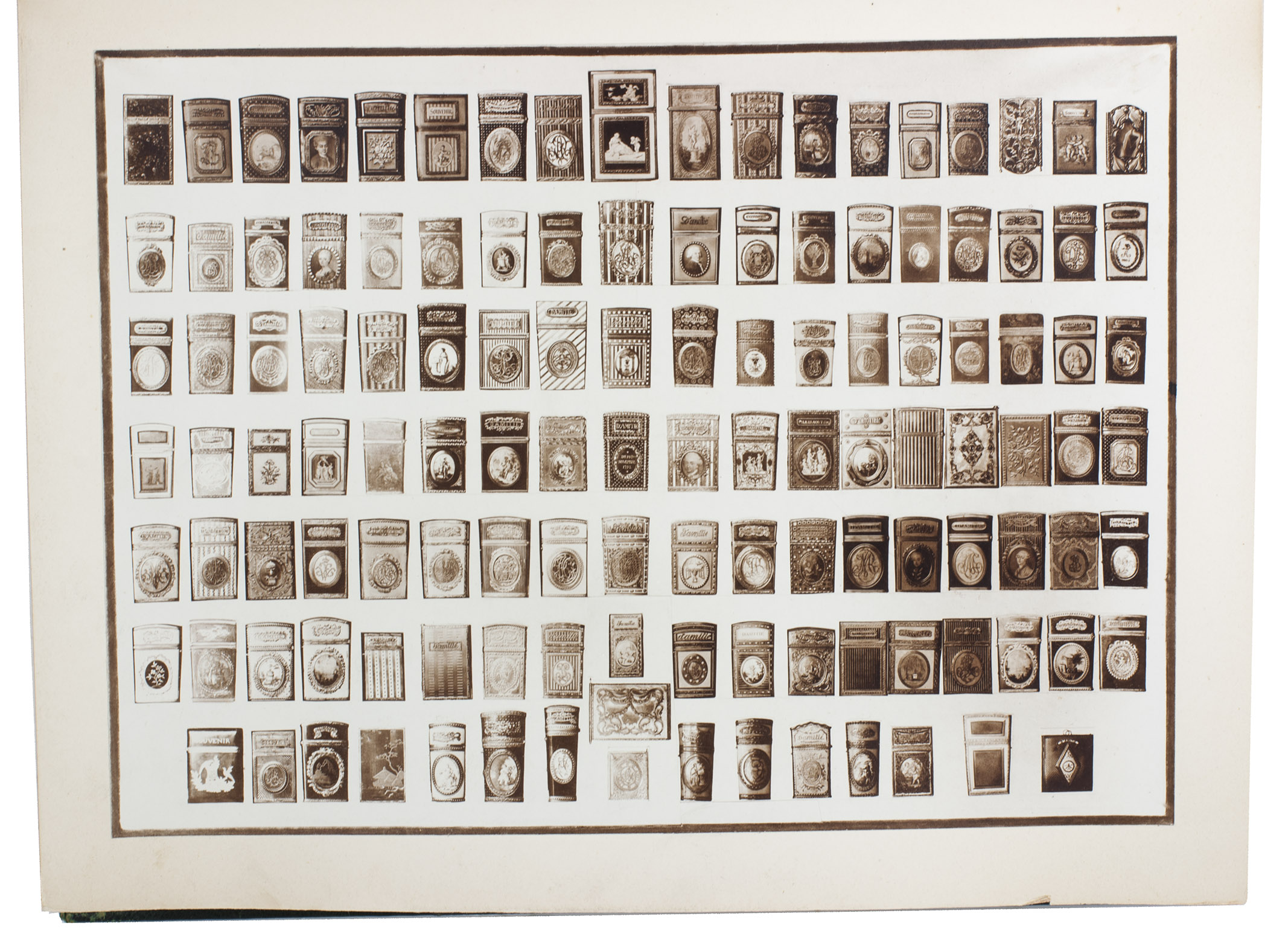 Rare catalogue of the collection of dance card cases of Bernard Franck (1848-1924), a well-known collector of memorabilia from the Napoleonic era. It shortly describes and displays both sides of 124 ornate eighteenth century jewelled cases to house dance cards issued for royal and aristocratic balls. The catalogue was only produced in 20 copies, and the collection of cases was sold to J.P. Morgan around 1910, who donated it to the Metropolitan Museum of Art in 1917.