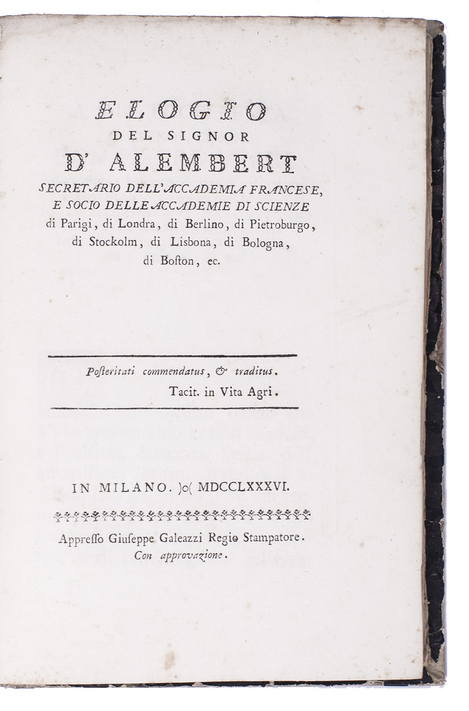 (2) FRISI, Paolo. Elogio del signor D'Alembert.