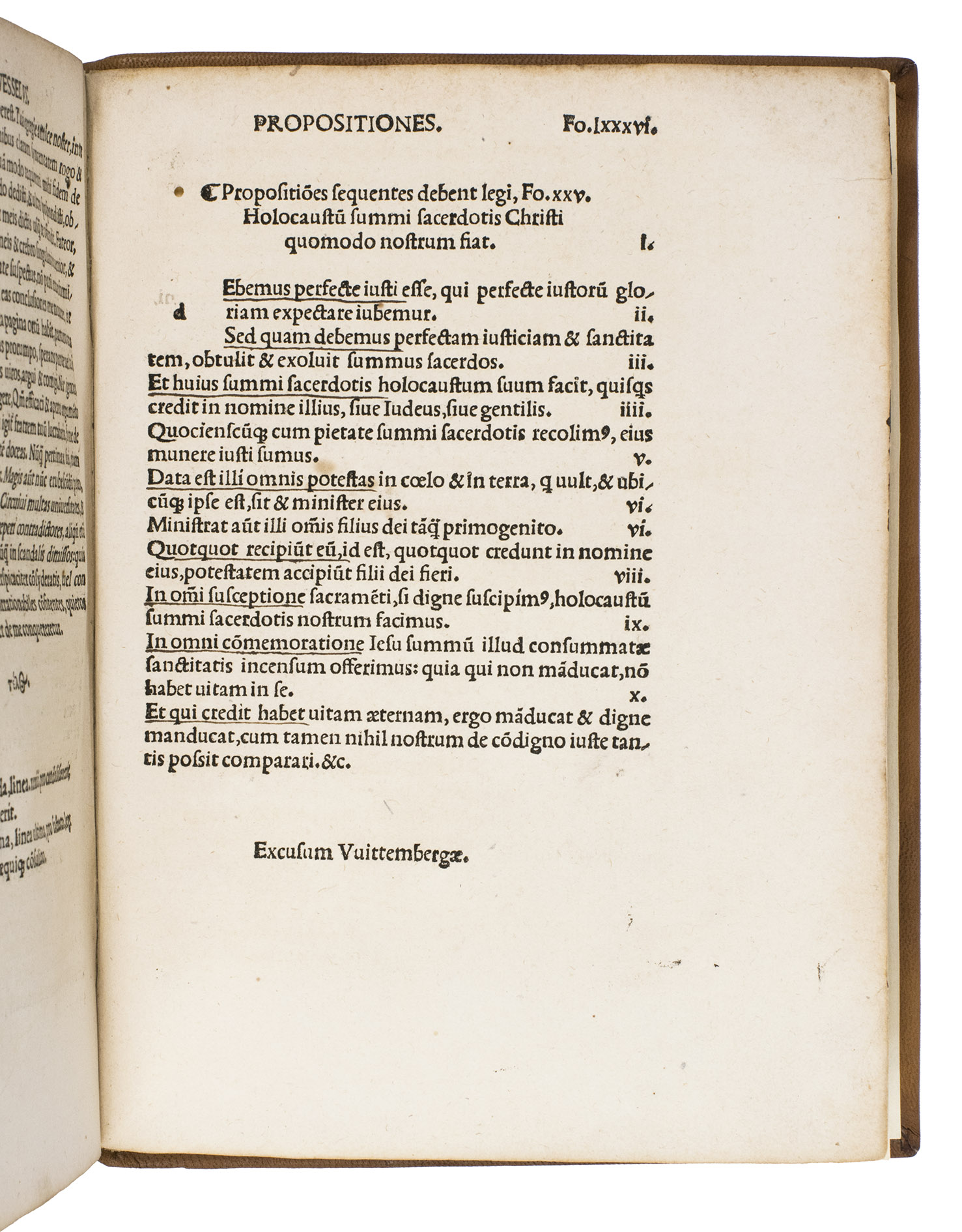 (Colophon:) Wittenberg, [Melchior Lotter the Younger, 1522]. 4to. With an elaborate woodcut title border by Lucas Cranach the Elder. Modern blind-tooled sheepskin. [4], LXXXVI ll.