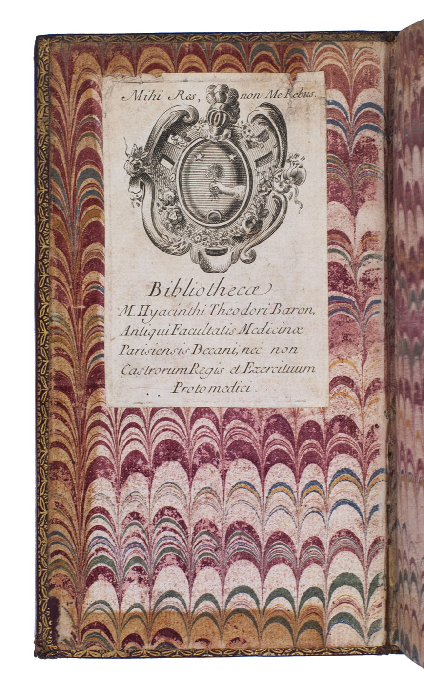 With the arms of Philippe d'Orléans (1674-1723), "le Régent", on the boards and the bookplate of the French physician Hyacinthe-Théodore Baron (1707-1787), dean of the medical faculty in Paris. Slightly browned with occasional minor foxing, but otherwise in very good condition. Binding slightly rubbed along the extremities and with a tiny wormhole in the foot of the spine, otherwise very good as well. Blake 169; for the arms: Olivier: 2566.1 & 2570.1.
