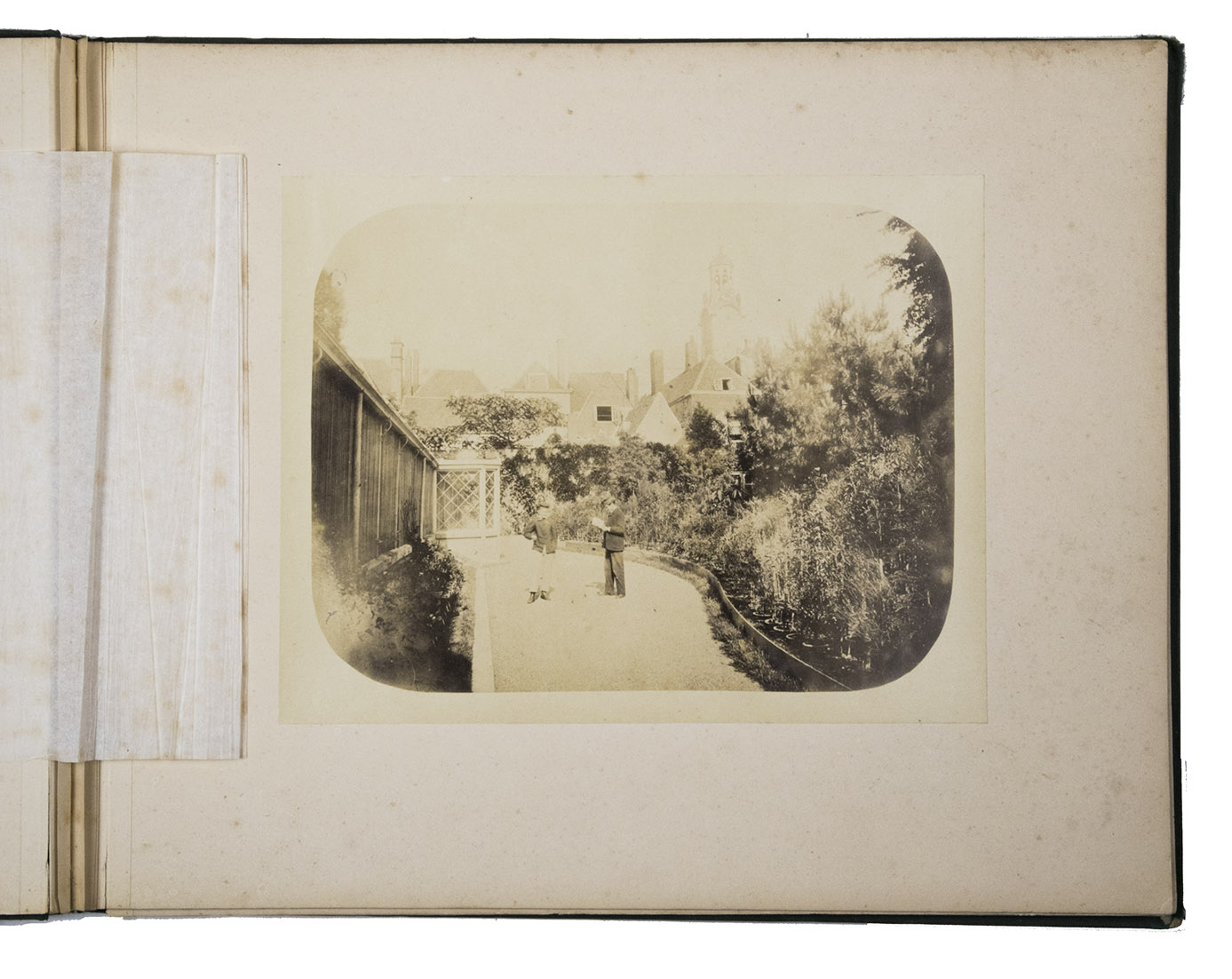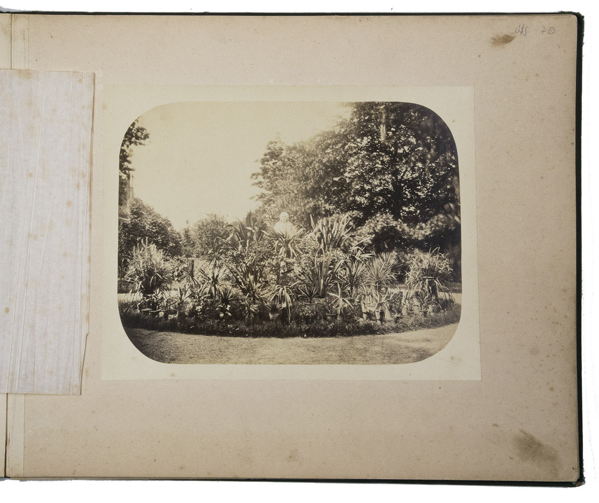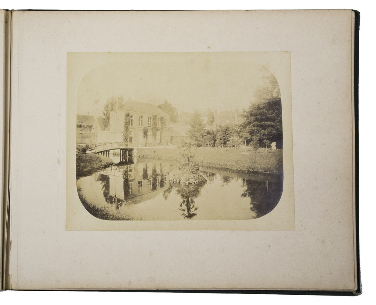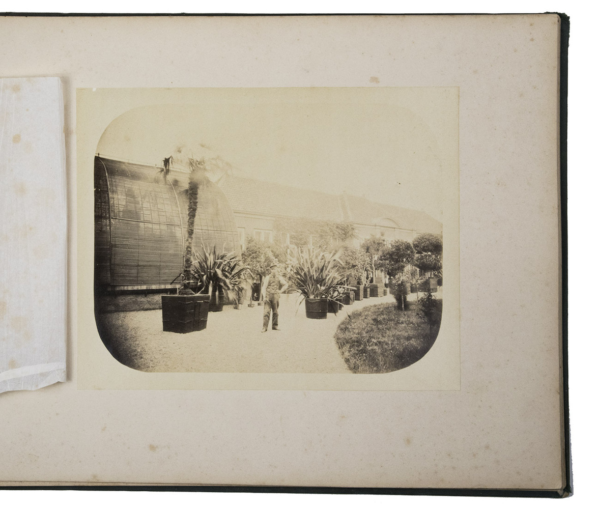 Twelve beautiful original photographic albumen prints taken in the Hortus Botanicus of Leiden University, the first botanical garden in the Northern Netherlands, founded in 1590. The locations of many of the photographs are still recognizable, including most of the buildings, "the bust near the bee-hives" and the Witte Singel (the canal next to the garden). Jan Goedeljee (1824-1905) began as bookbinder in Leiden but from 1865 on he preferred to be known as photographer. He had a studio on the Hogewoerd and already in 1866 he published this collection of 12 photographic albumen prints. Specializing also in portrait photography, including portraits of members of the Royal family, he called himself "Court photographer".