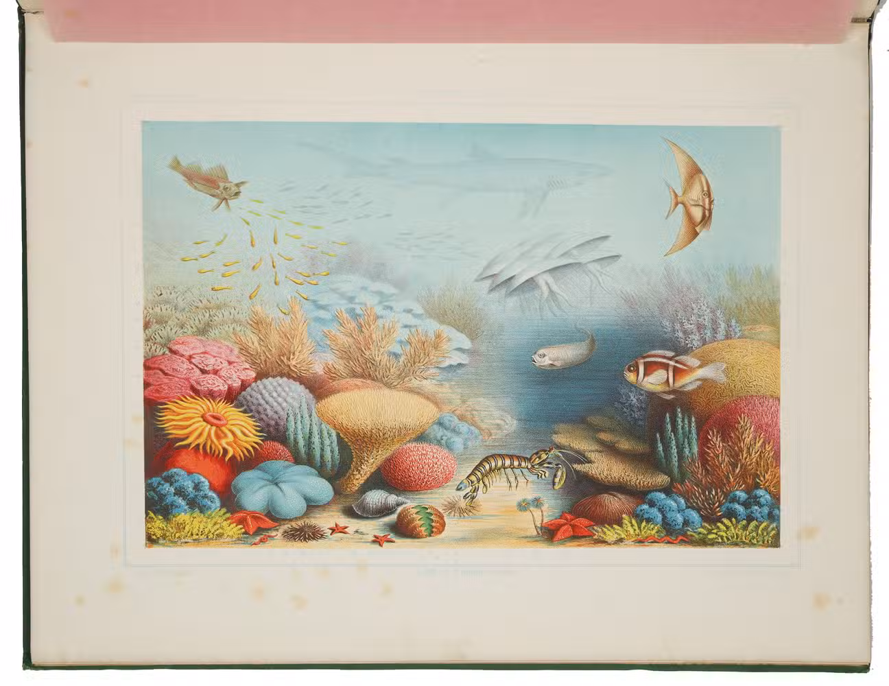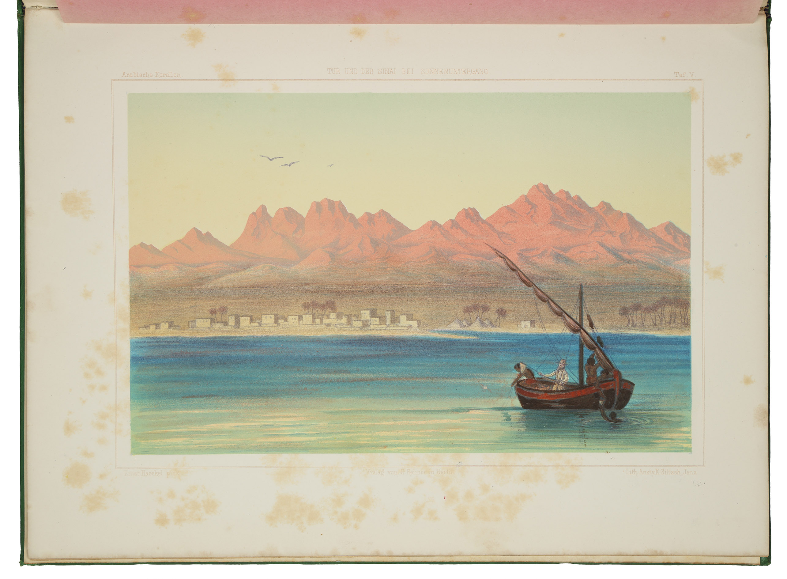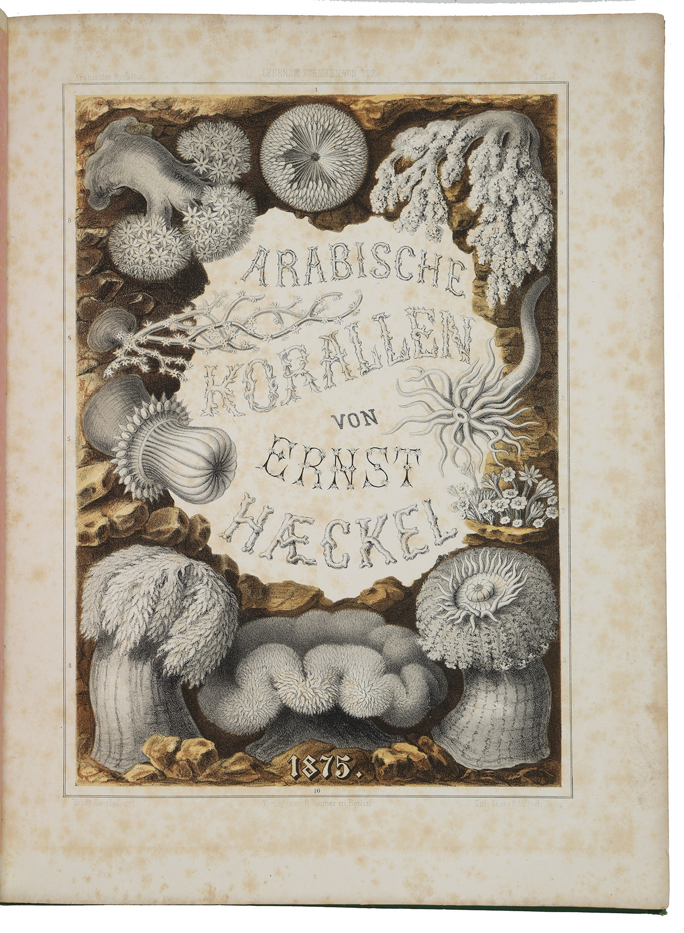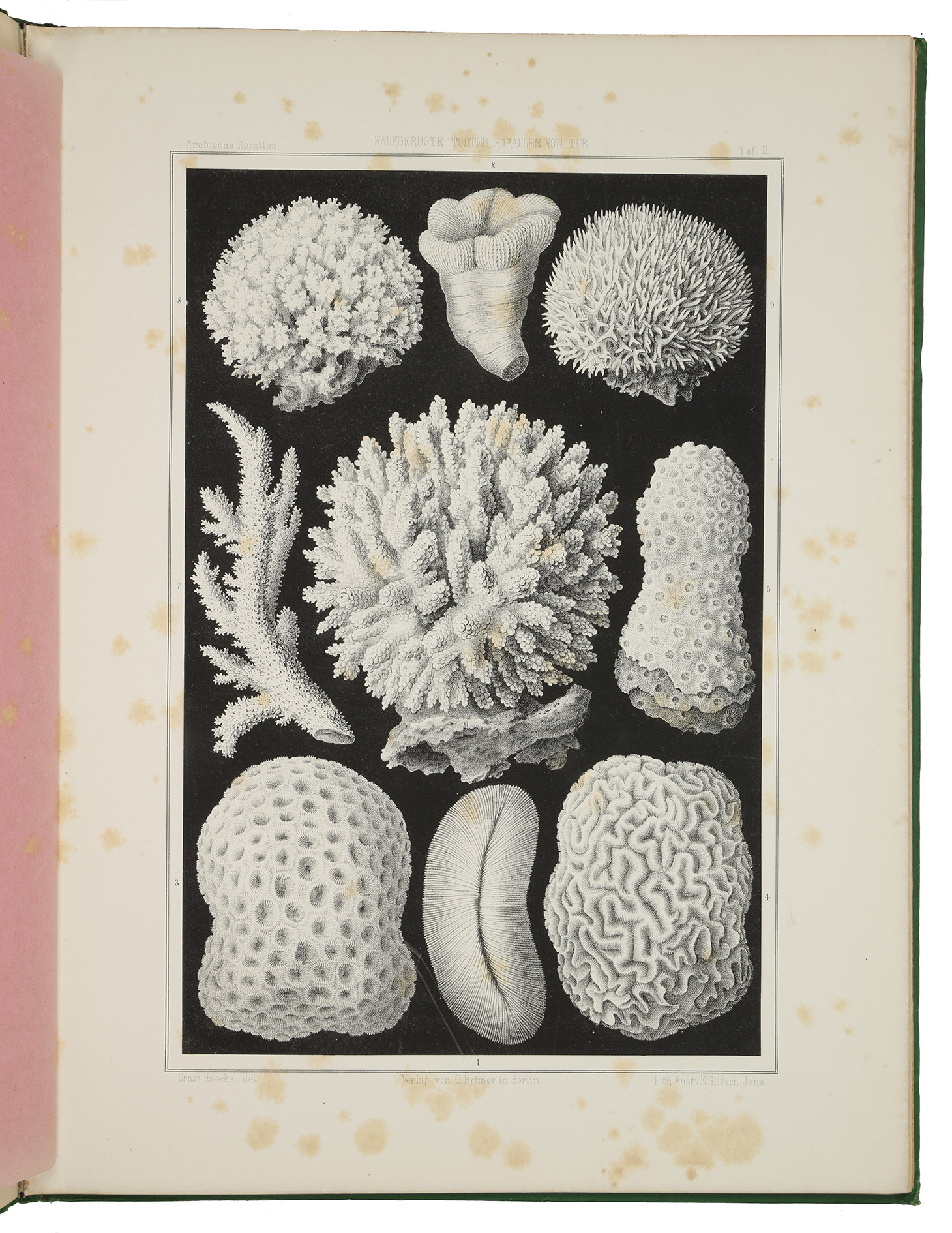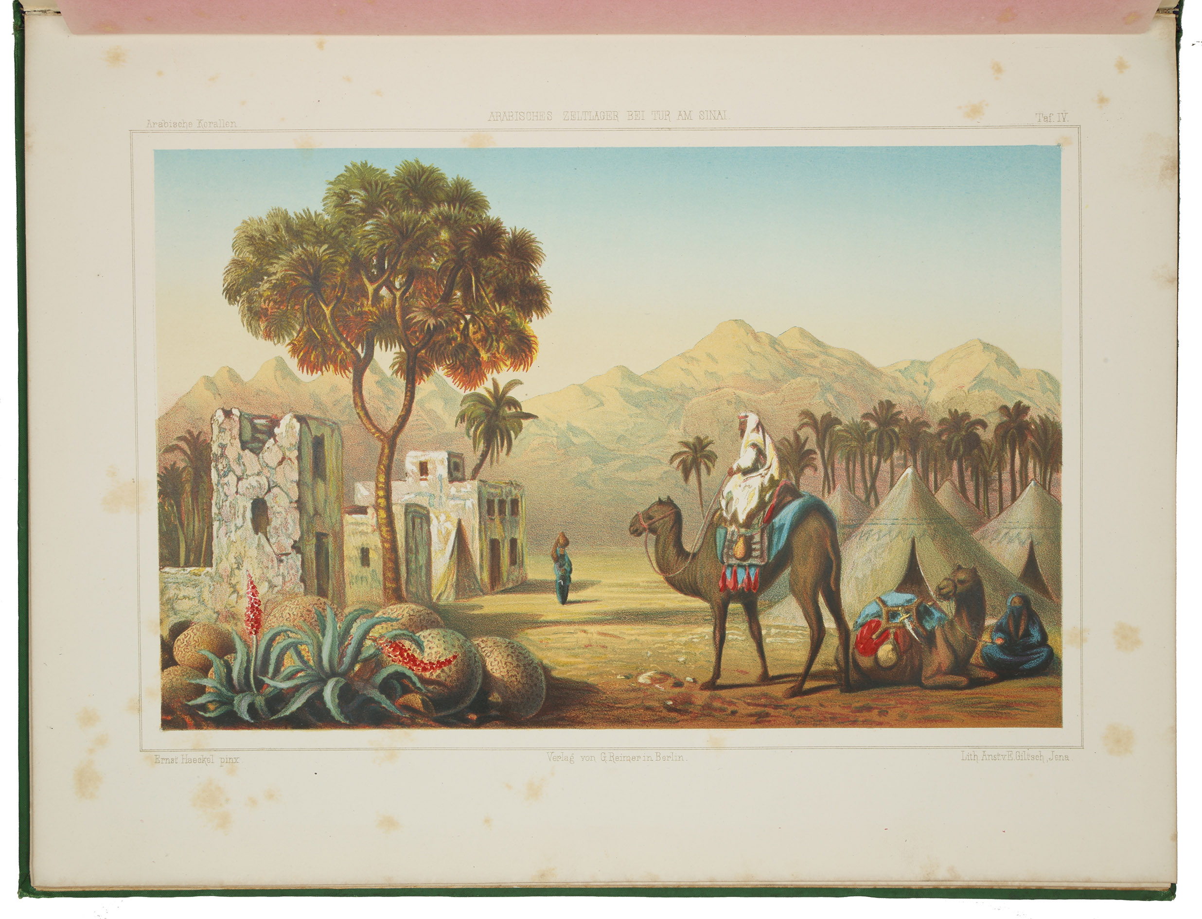 First edition of this splendidly illustrated classic. The plates show corals (2), an Arabic tent camp, and the sunset over the Sinai Peninsula, as well as a genealogical tree of corals.