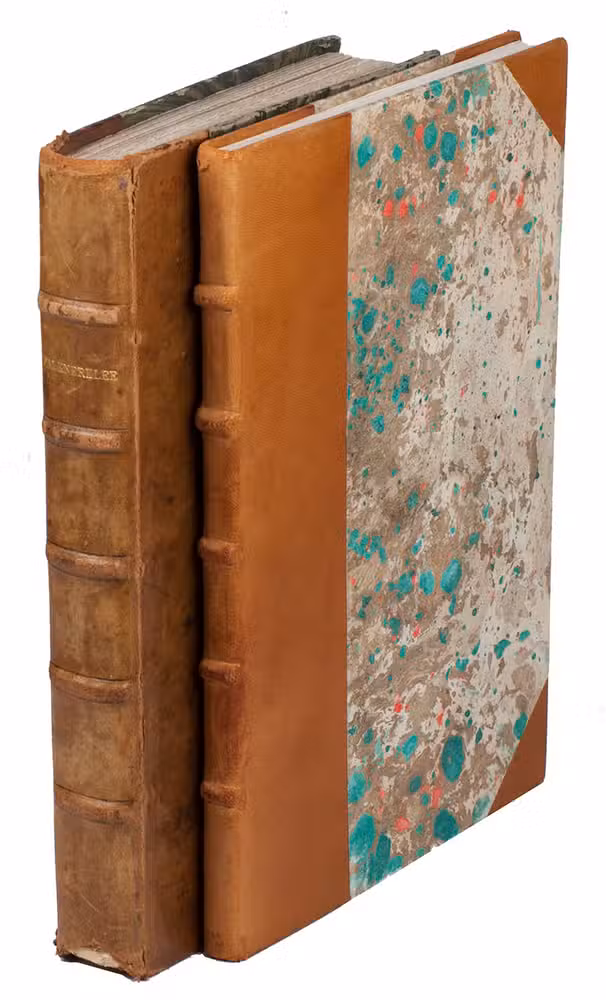 With some modern pencil notes on the flyleaf and in the margins. Somewhat foxed throughout, as usual, but otherwise in very good condition and nearly untrimmed. The original publisher's illustrated wrappers, rarely preserved, show a few small chips, tears and scrapes but are still in good condition. The binding is chipped at the foot of the spine and slightly worn, but still generally good. Harting 112; Schwerdt I, p. 228; not in Atabey; Blackmer.