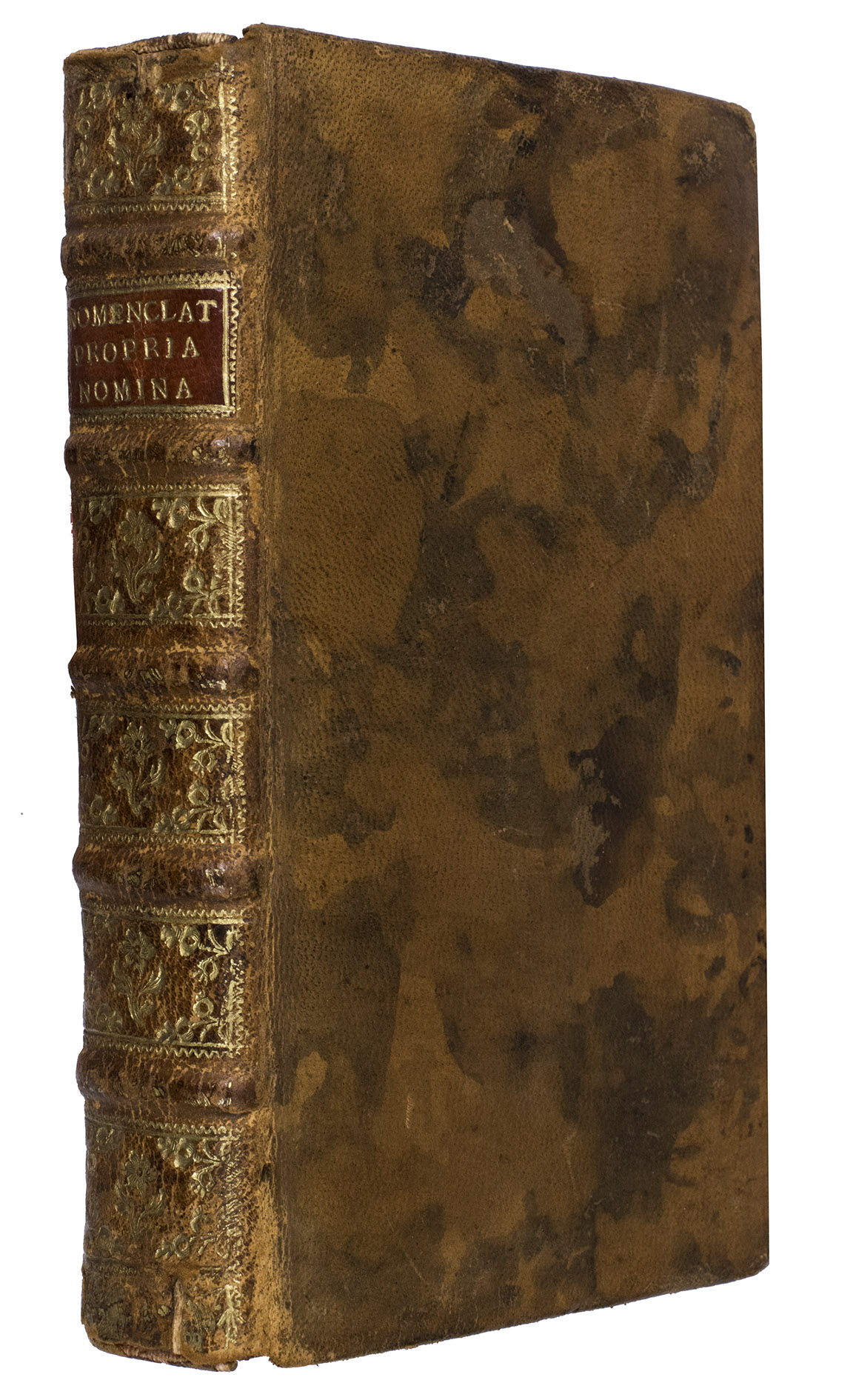 18th-century marbled calf, sewn on five supports with corresponding raised bands on the gold-tooled spine, with a separate red calf label lettered in gold, red edges. [8], 432, [70], [2 blank] pp.