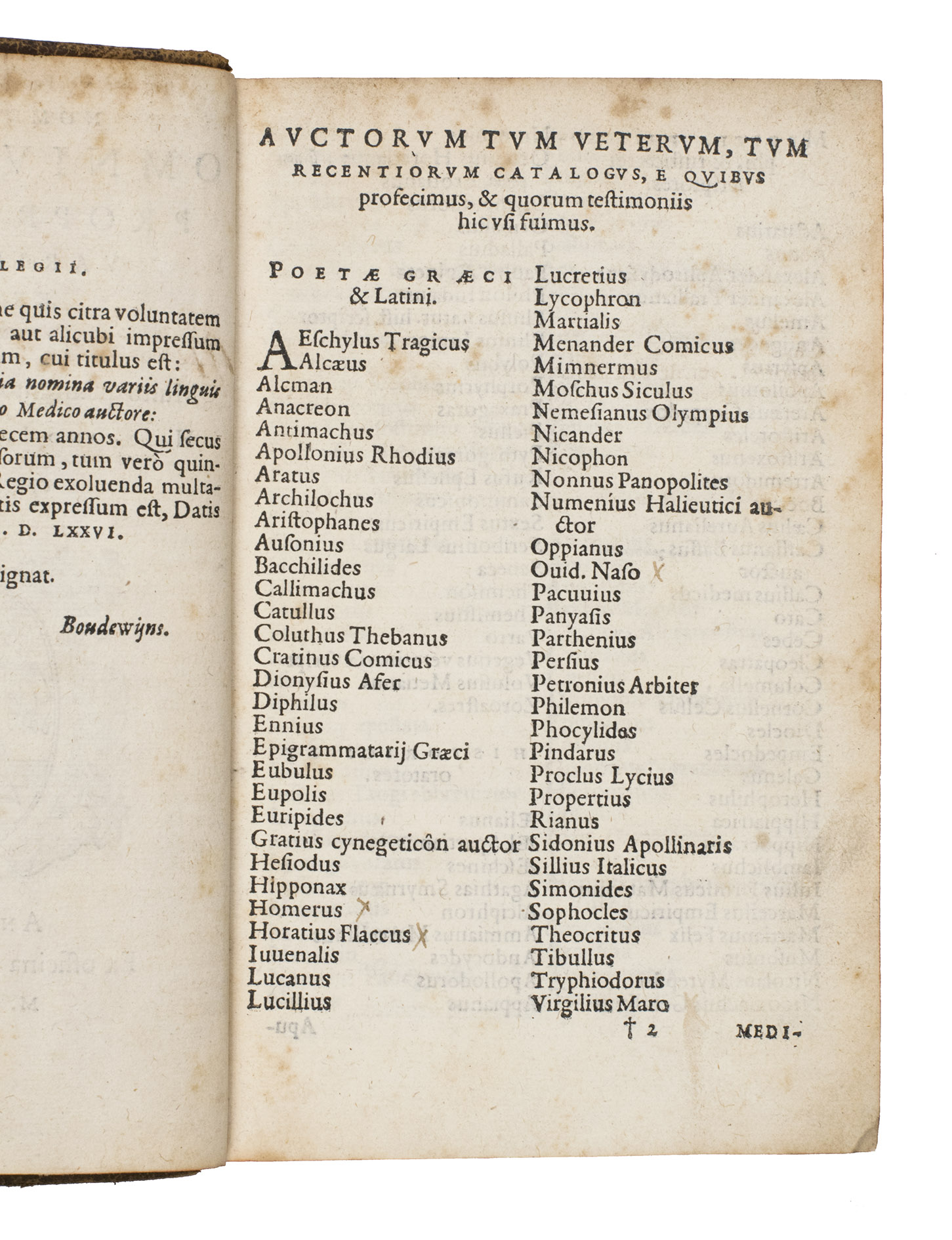 With a faded old ownership inscription on the title page, some wear to the spine ends, margins a bit short and damp stained, the work is slightly browned throughout. Otherwise in good condition. Adams J 450; Belgica typographica 1670; Claes 282; EEB (Proquest) ned-kbn-all-00028865-001; Heritage of the Printed Book Database no. GBCC6472-E %IO; Peeters-Fontainas 653; Ruelens-de Backer p. 257 no. 19; The Plantin Press Online cp010503; USTC 340794; Voet (Plantin) 1491; not in BM STC Dutch.