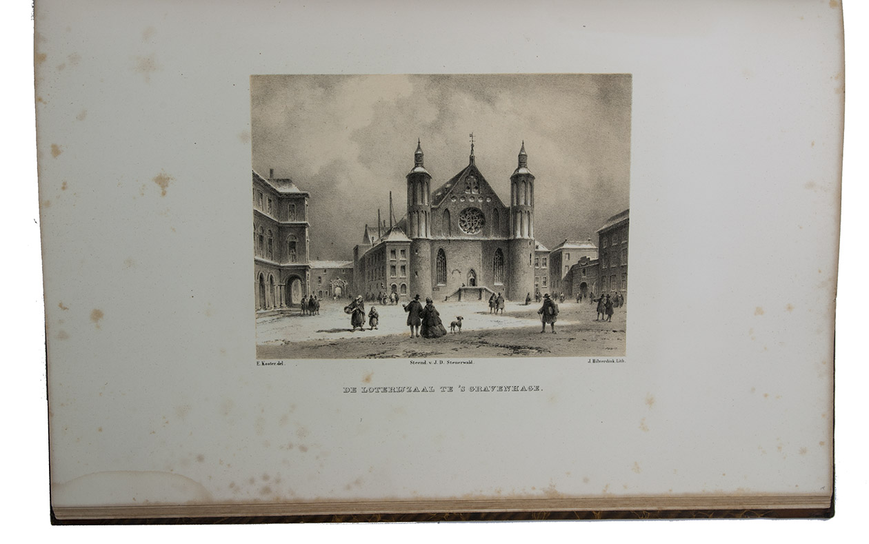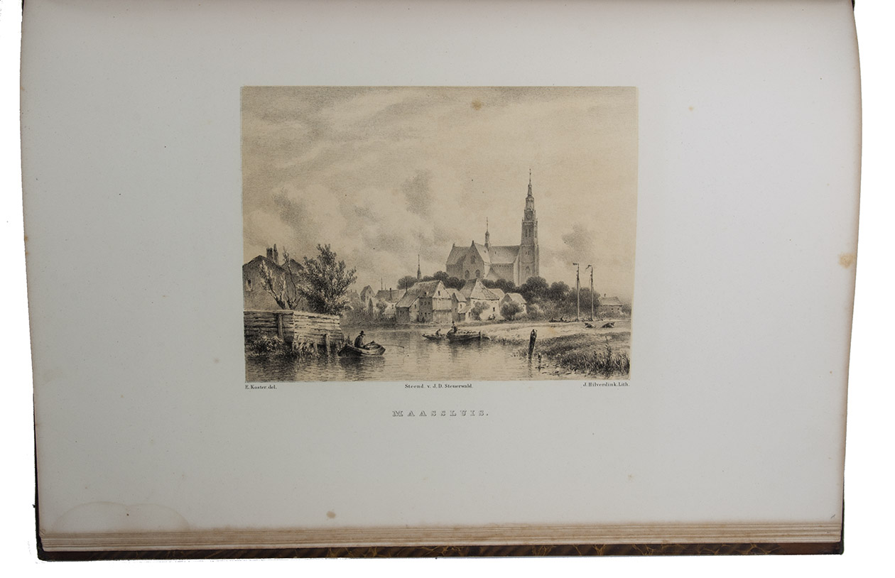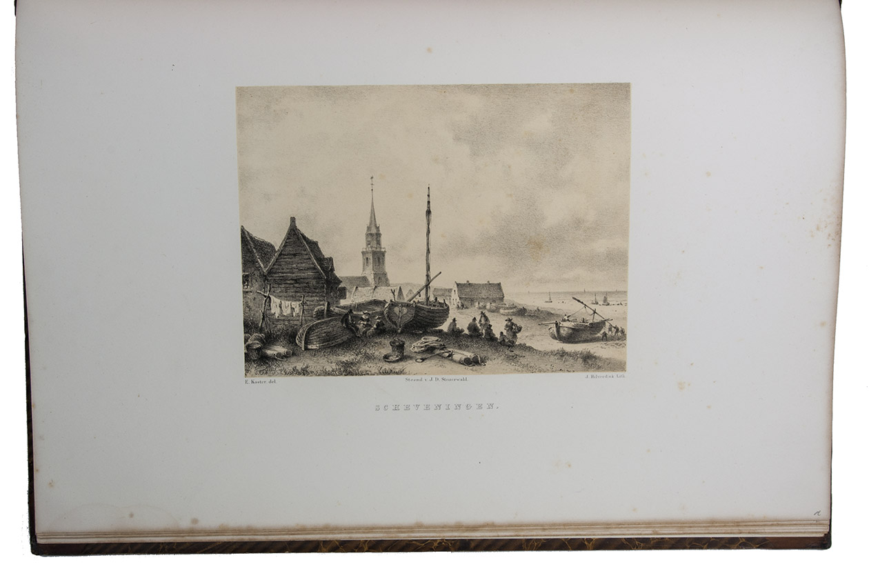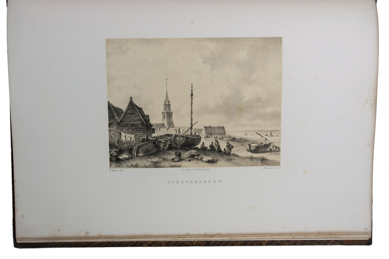 First and only edition of an album with twenty four beautifully drawn lithographed Dutch city and harbour views. Lithographed by Johannes Hilverdink (1813-1902) after sketches of Everhardus Koster (1817-1892). Both artists are best known for their marine paintings.