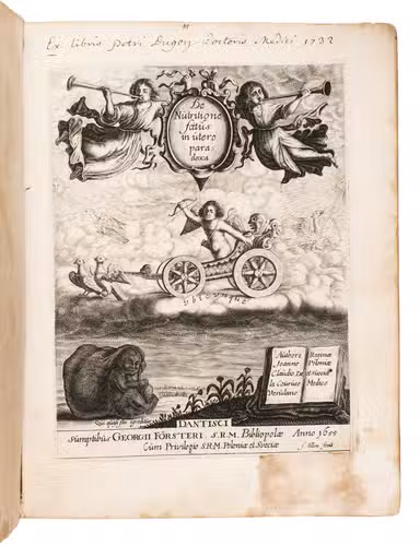Danzig, G. Förster, 1655. 4to. With an engraved title. Contemporary blind-tooled vellum. [22], 254 pp.