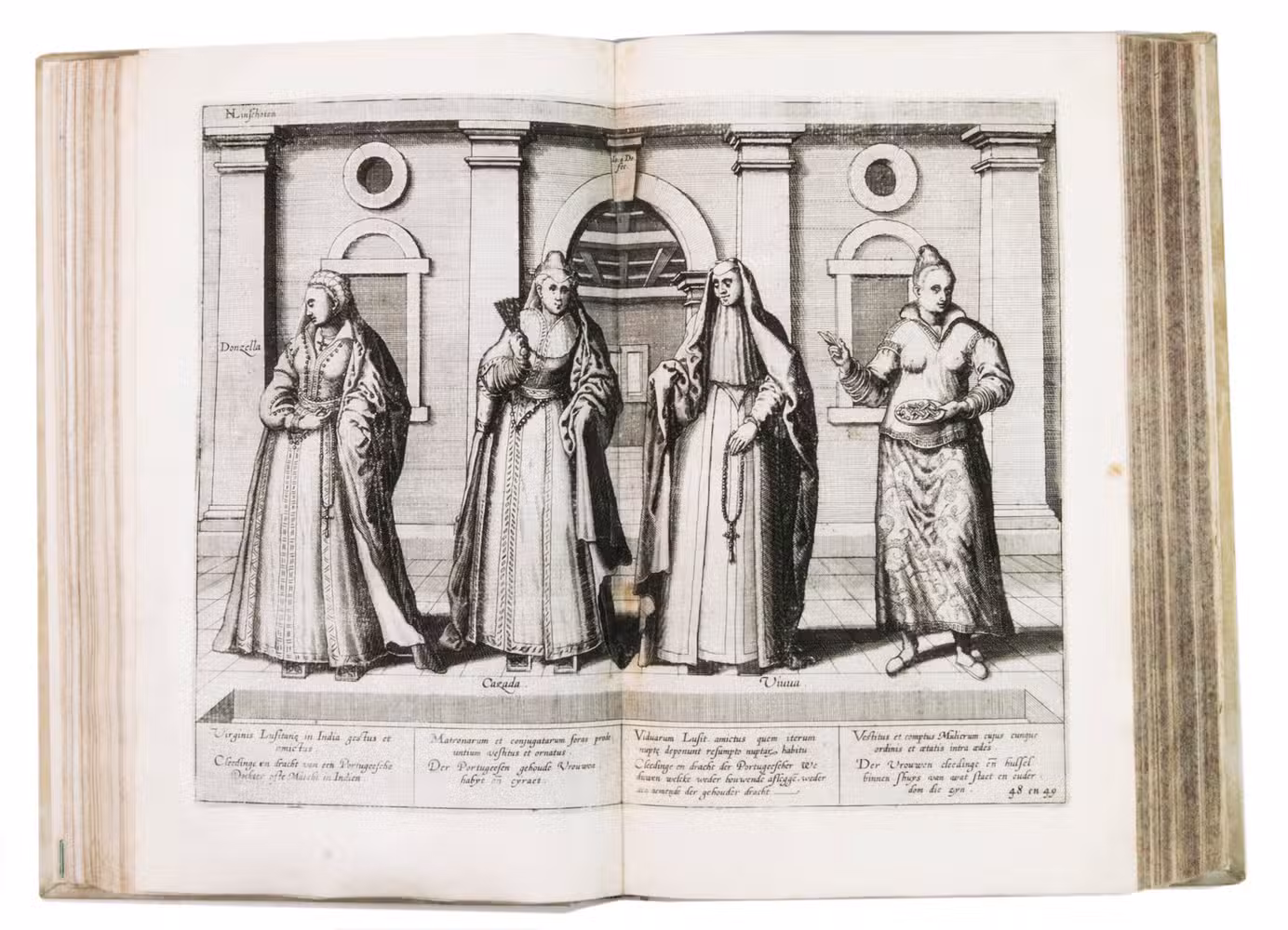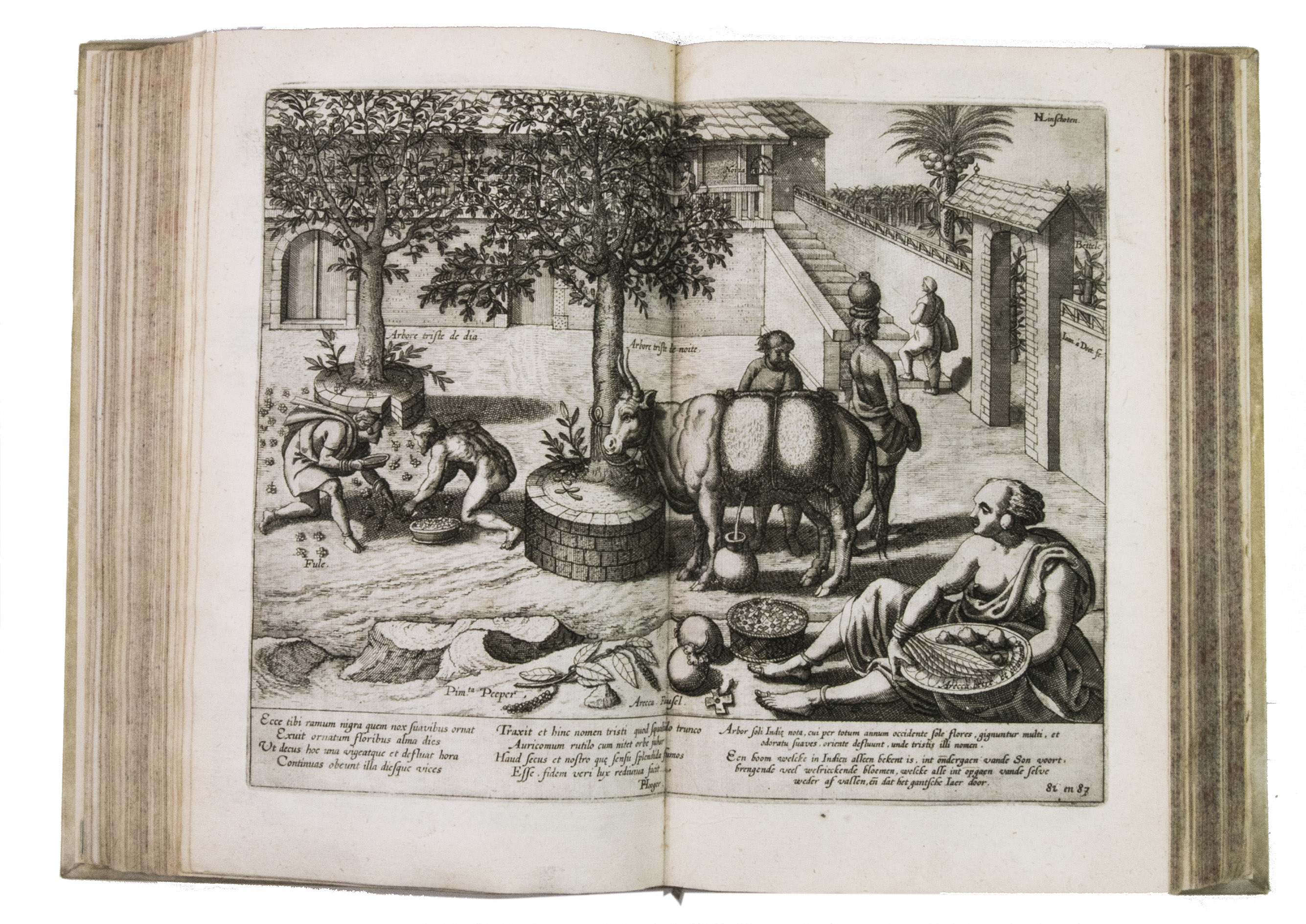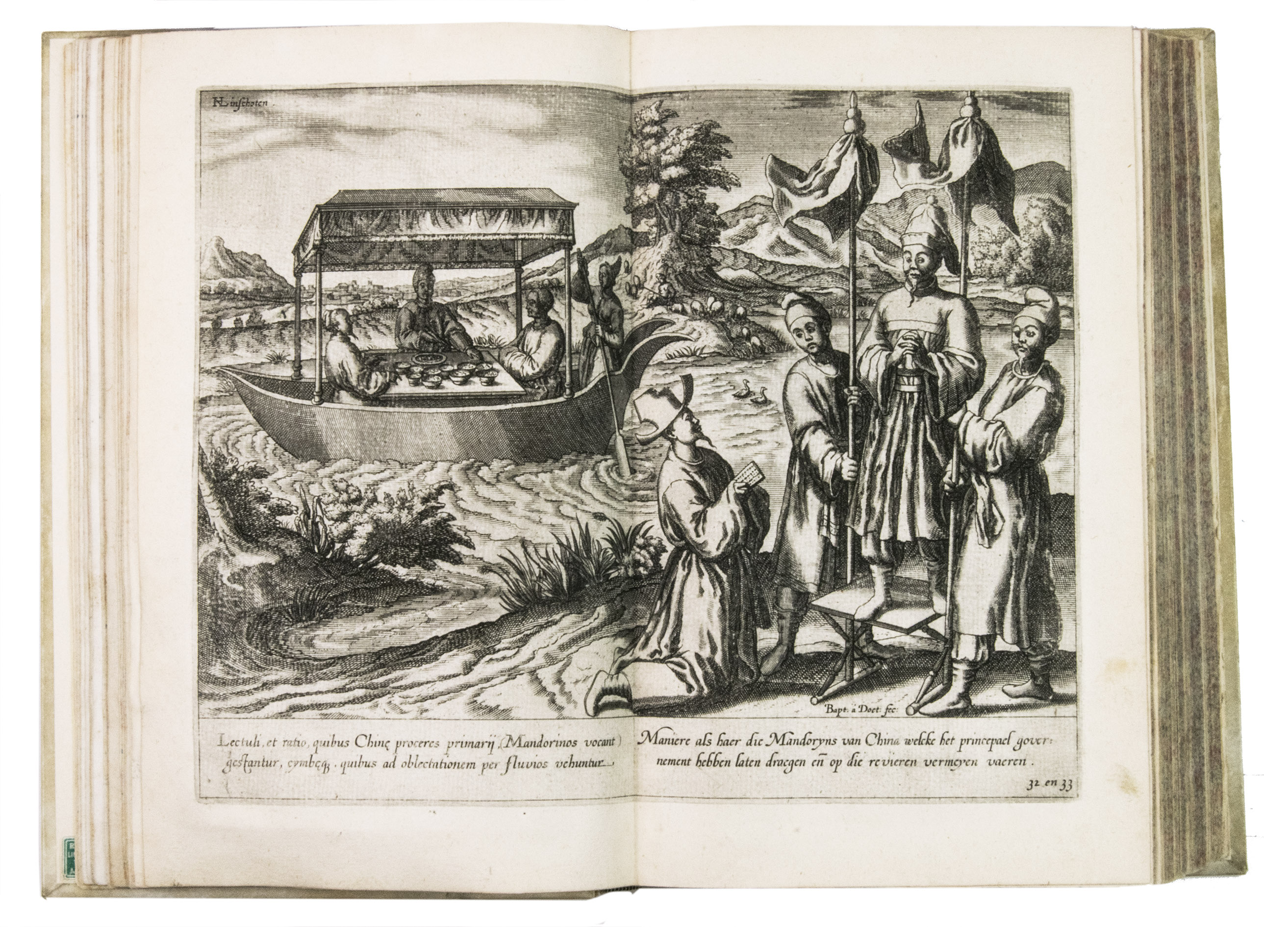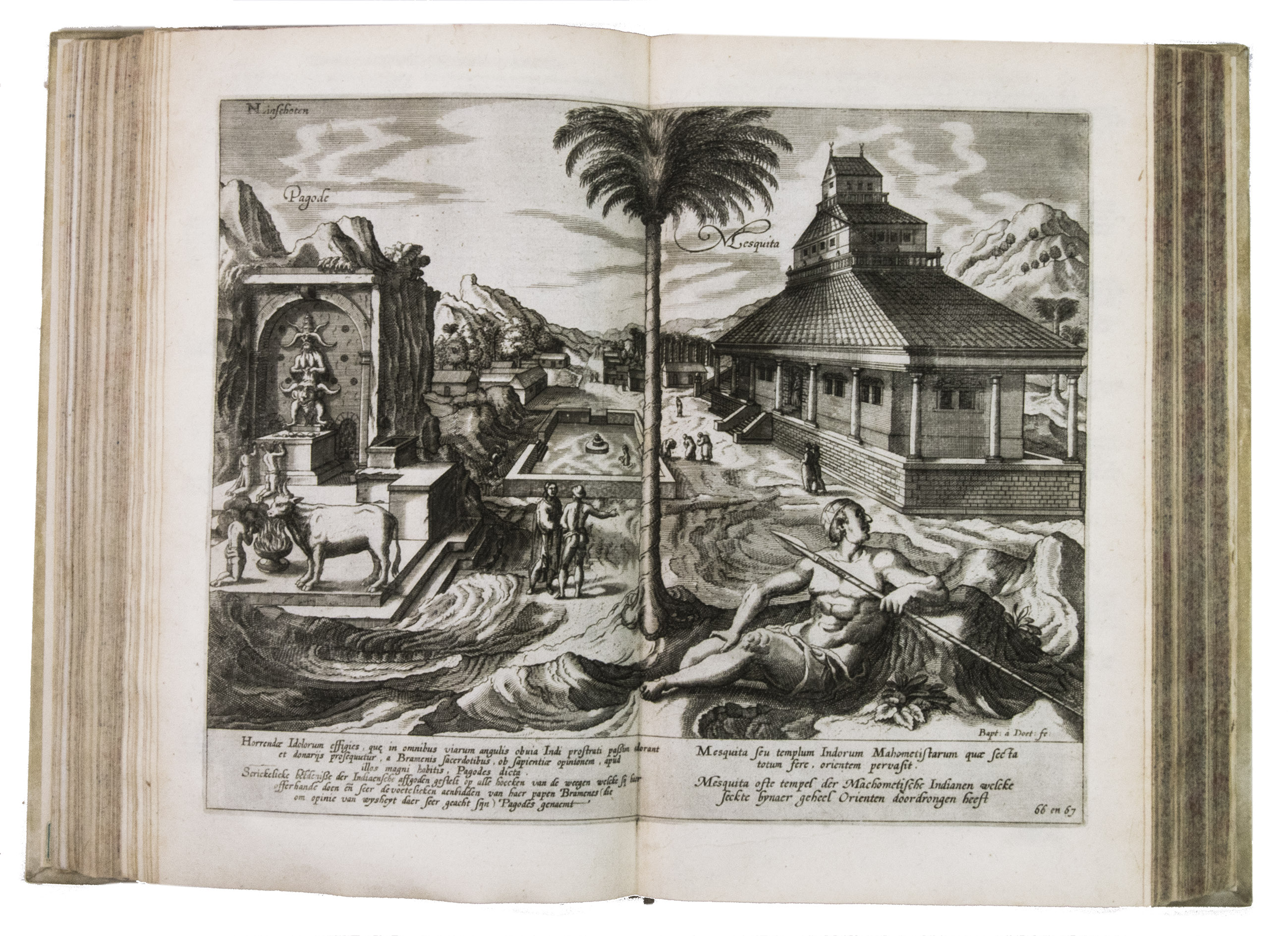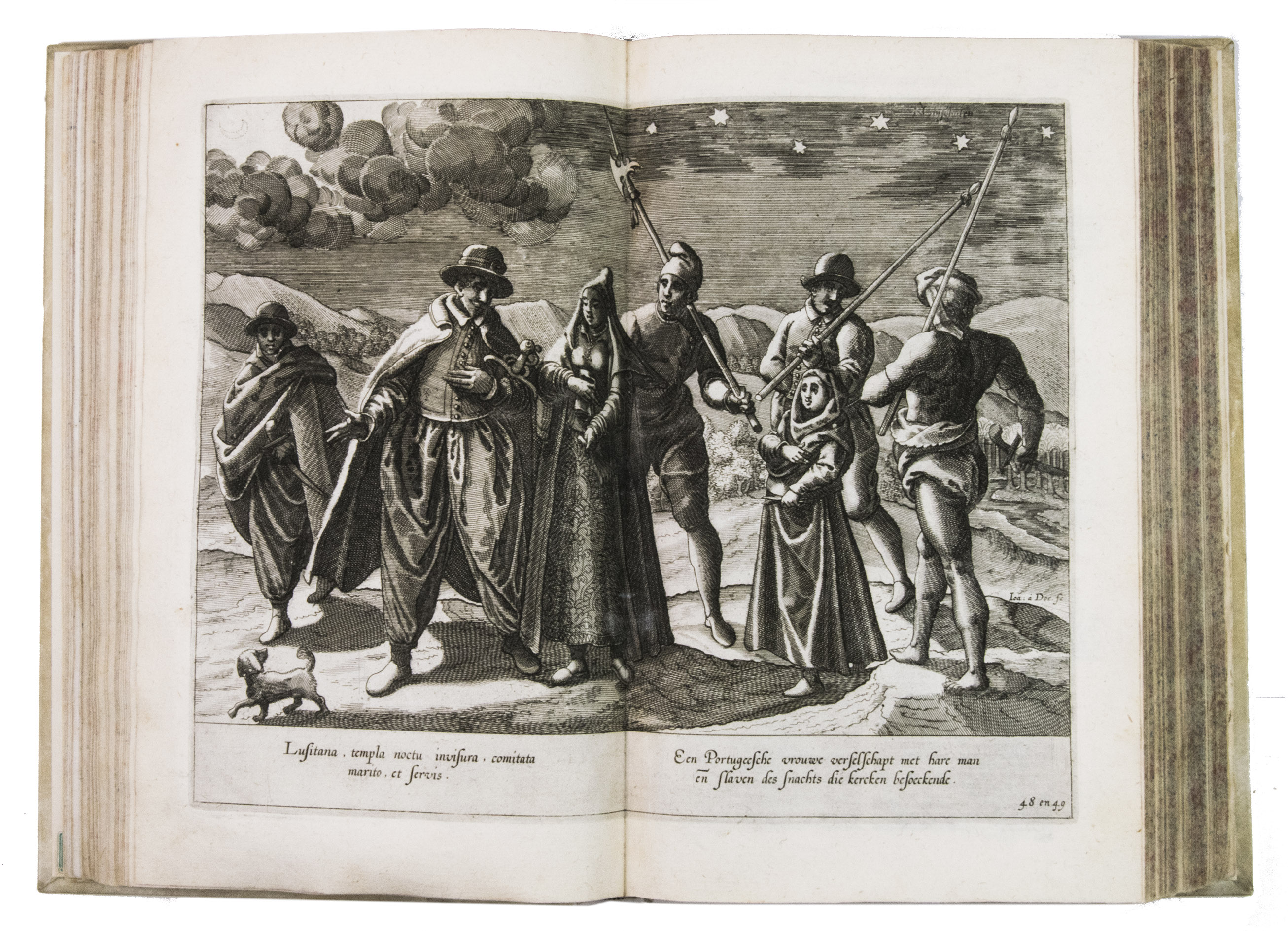 With the bookseller's label of R. W. P. de Vries in Amsterdam mounted at the foot of the front pastedown, and the rare "Waerschouwinge voor de boekbinders" loosely inserted in the back. The work has been recased with new endpapers and supports, small restorations on the head and foot of the spine. The work is slightly browned throughout, part 3 (ads 2a and 2b) has been bound before part 2 (ad 3), small restorations at the bottom outer corner of some of the leaves, small tears in the folds of some of the maps, mostly in the margins, contemporary annotations in the margins of some of the leaves and on the verso of some of the plates, the chapter titles on page 12-20 and 31-34 in ad 1 have been corrected with a small strip of paper glued on top, the leaves of ad 3 have been numbered by hand. Otherwise in good condition. Alden & Landis 596/63; Borba de Moraes, pp. 486-487; Church 252; Howgego, L131-132; Parker, Books to build an empire, pp. 159-161; Sabin 41356; STCN 853189978 (9 copies); cf. Hill 1025 (English ed.); Nave, Philologia Arabica 22 (1623 ed.); for the map of Arabia, Persia and India: Tibbets 46 & pp. 23.