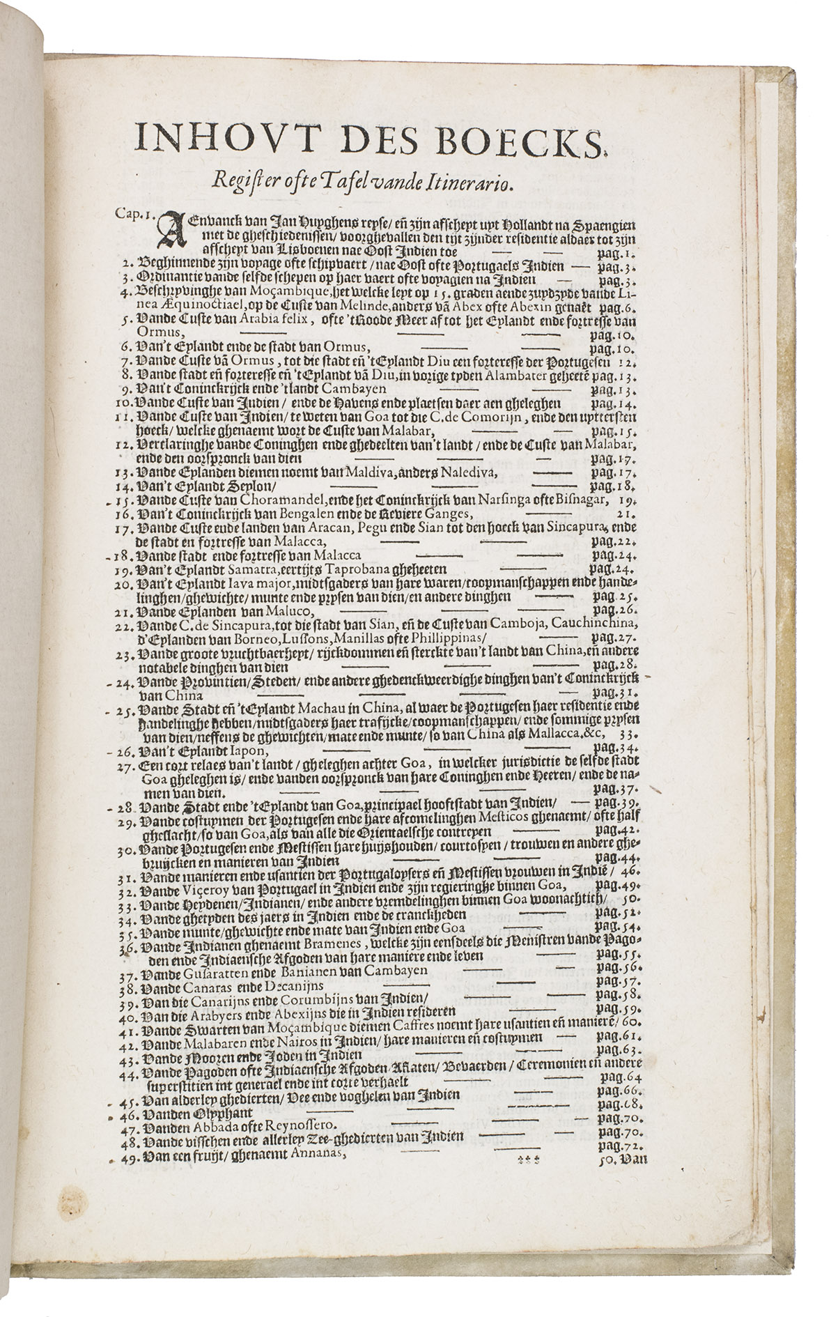 Itinerario, voyage ofte schipvaert, ... naer Oost ofte Portugaels Indien ...