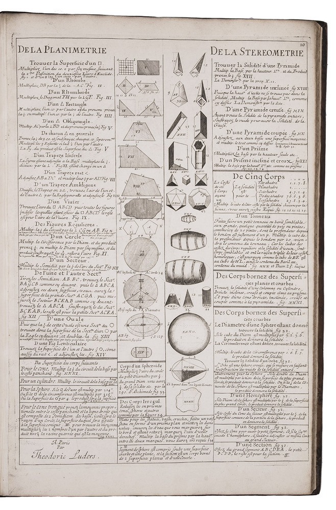 The plates appear to have been originally produced and sold separately, as most plates have their own address, and one is dated 1664. Luders appears to have first published the Arithmetique in 1663 and the Mathematique in 1664. Another undated edition appeared ca. 1684.