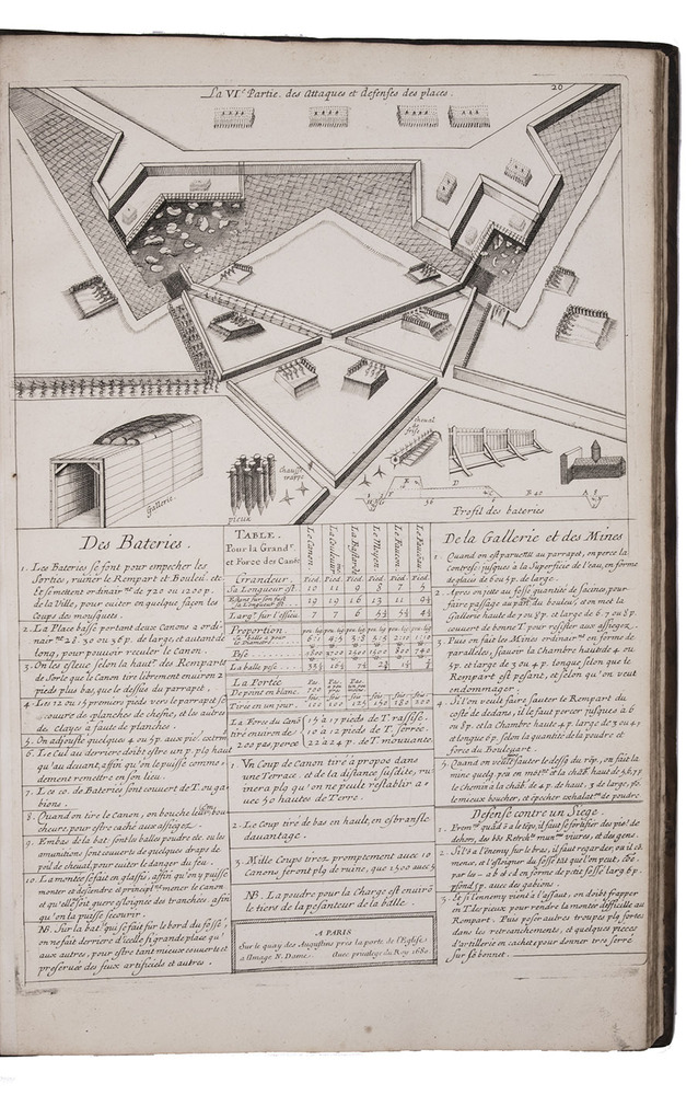 Small restored tear in the second title-page, slightly browned along the edges and some occasional minor spots. Binding restored and rebacked with original backstrip laid down. A good copy of a beautiful engraved book on mathematics and fortification. Goldsmith BMC STC French L2095 & L2096; Graesse IV, p. 290; not in Honeywell; Kress; Norman Library; Osler.