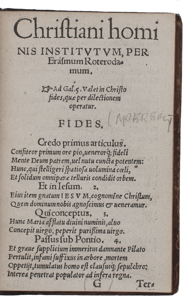 (3) ERASMUS, Desiderius. [Drop title:] Christiani hominis institutum.