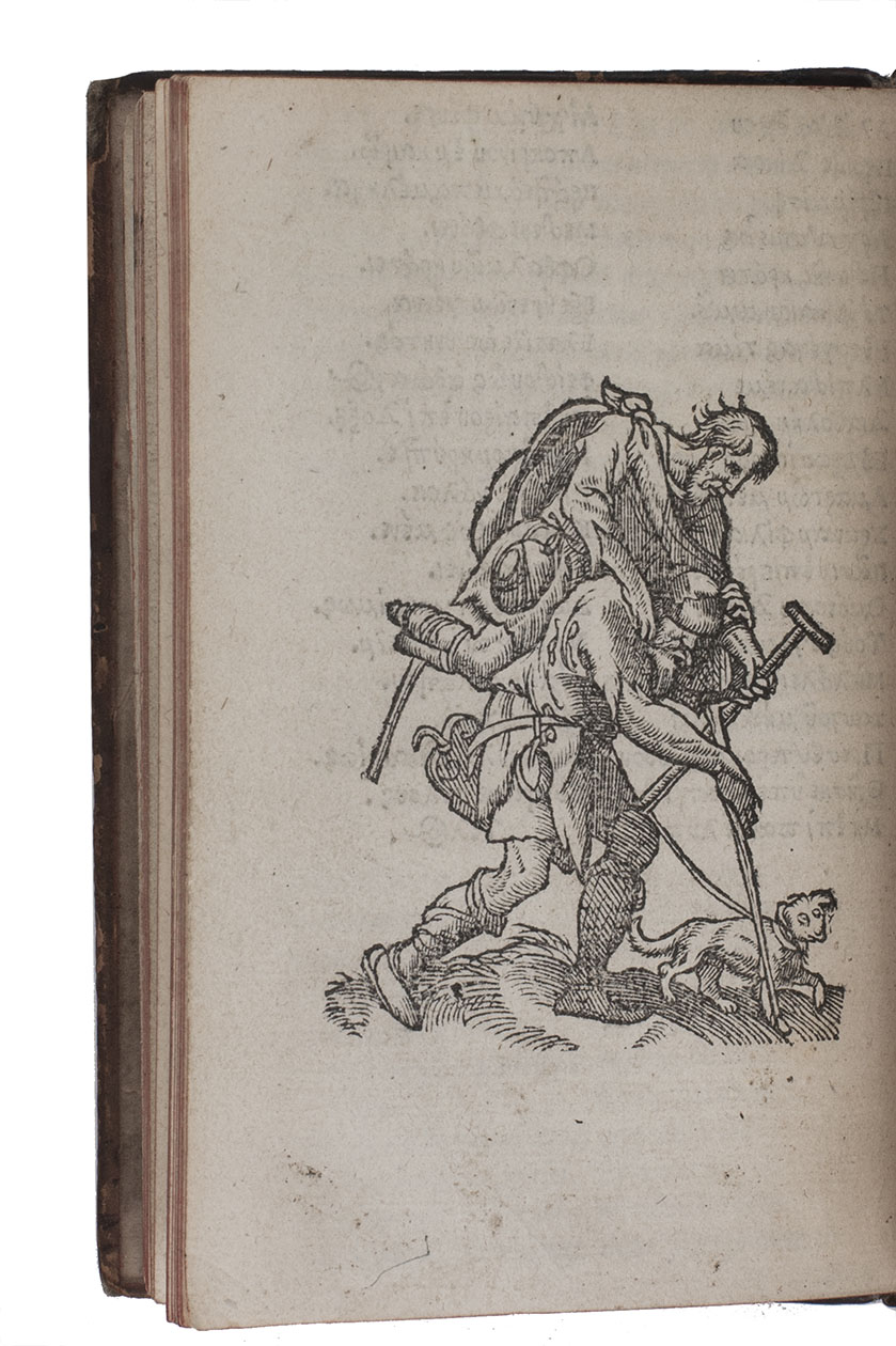 Utrecht, Herman van Borculo, 1552. 3 works in 1 volume. Small 8vo (13.5 x 9 cm). With a woodcut publisher's device on the title page, dated 1551 and including cupid with a crossbow, and a large woodcut device on the last page, showing Saint Christopher carrying a man with a wooden leg on his back and holding a small dog on a leash. All three works are set in Aldine-style italic types, the Erasmus also with a long passage in Greek. With: