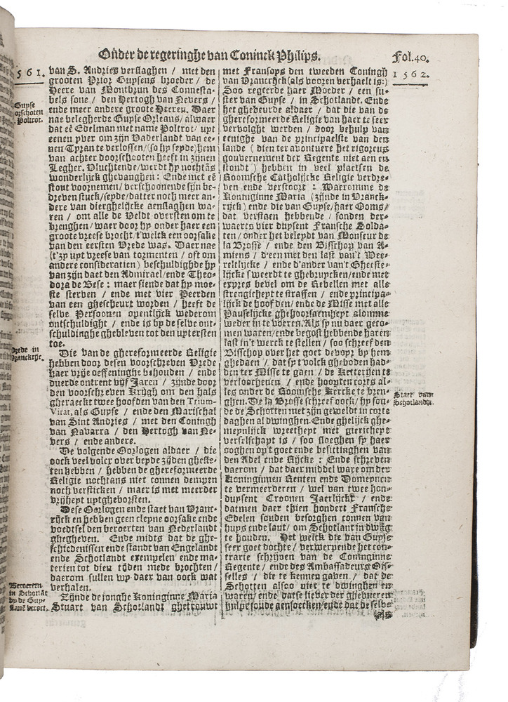 Even more extensive description available on request KVK & WorldCat (3 copies); STCN (1 of the same 3 copies); cf. De Buck 2295; Van der Heyden, "Emanuel van Meterens History ...", in: Quaerendo XVI (1986), pp. 3-29; J. Gerritsen, "Emanuel van Meteren's Commentariën and STC", in: Quaerendo XXX (2000), pp. 35-50; Sloos 12022.