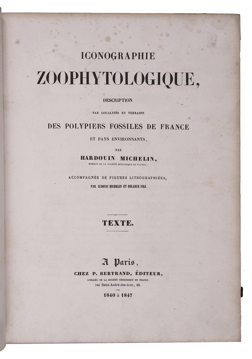 Michelin's extensive stratigraphical collection on Coelenterata is in the Paris Natural History Museum, and a number of these are figured in the present work.
