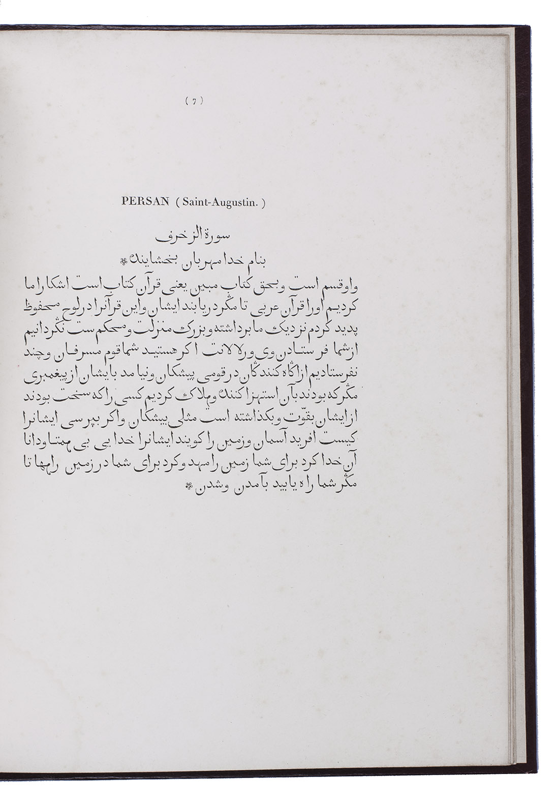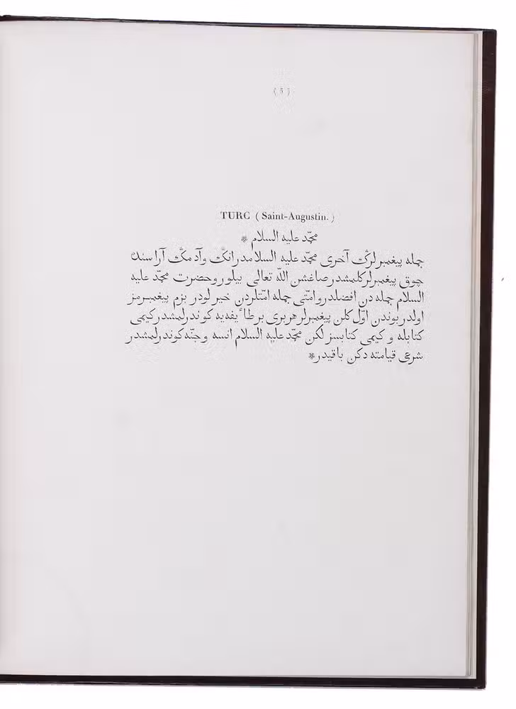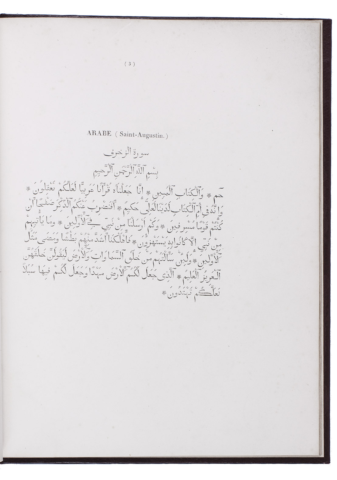 Type specimen of 2 Arabic types cut by the leading Paris punchcurtter Joseph Molé (1775-1841?), known as Molé jeune. Molé cut 2 sizes of Arabic (Saint-Augustin and Petit-Romain), including sorts for Turkish, Persian, Hindustani, Malay, Pashto (Afghani), also included in the present specimen. The work consists of a title-page, a brief foreword and 12 leaves of specimens to show passages in all six languages for each of the two types. The types were cast on the named bodies (about 14 and 10 point) , but were set with separate vowel points, the type with vowel points measuring about 161 mm/20 lines or about 24 point (Grand Parangon) and about 118 mm/20 lines or about 17 point (Gros Romain). Molé cut them under the guidance of the orientalist Louis-Mathieu Langlès (1763-1824) and they first appeared in the present work.