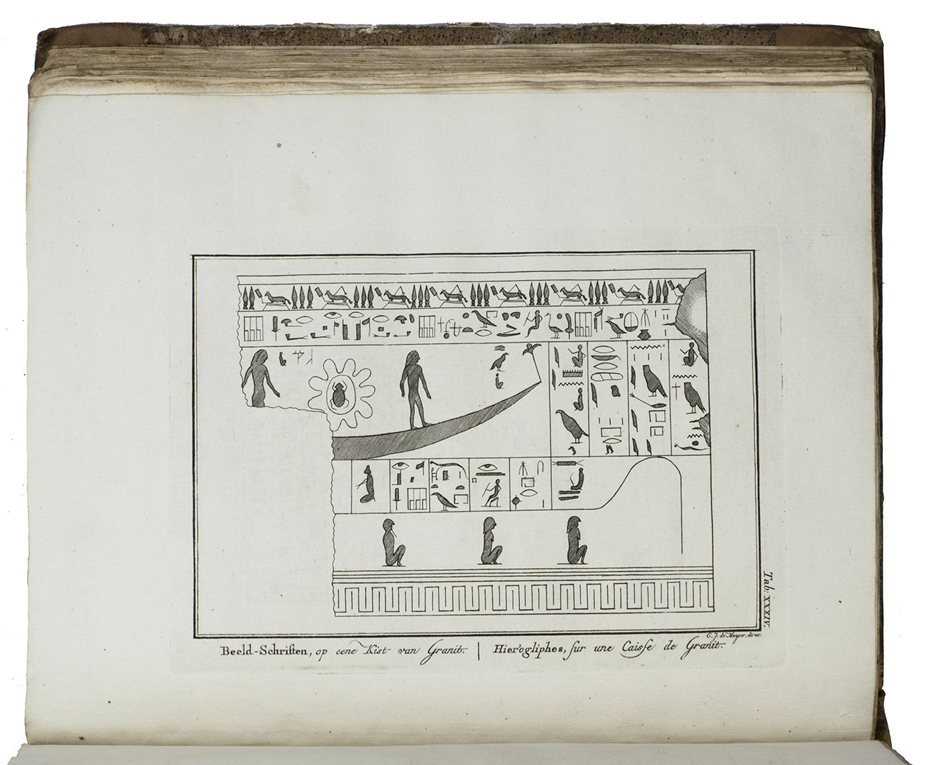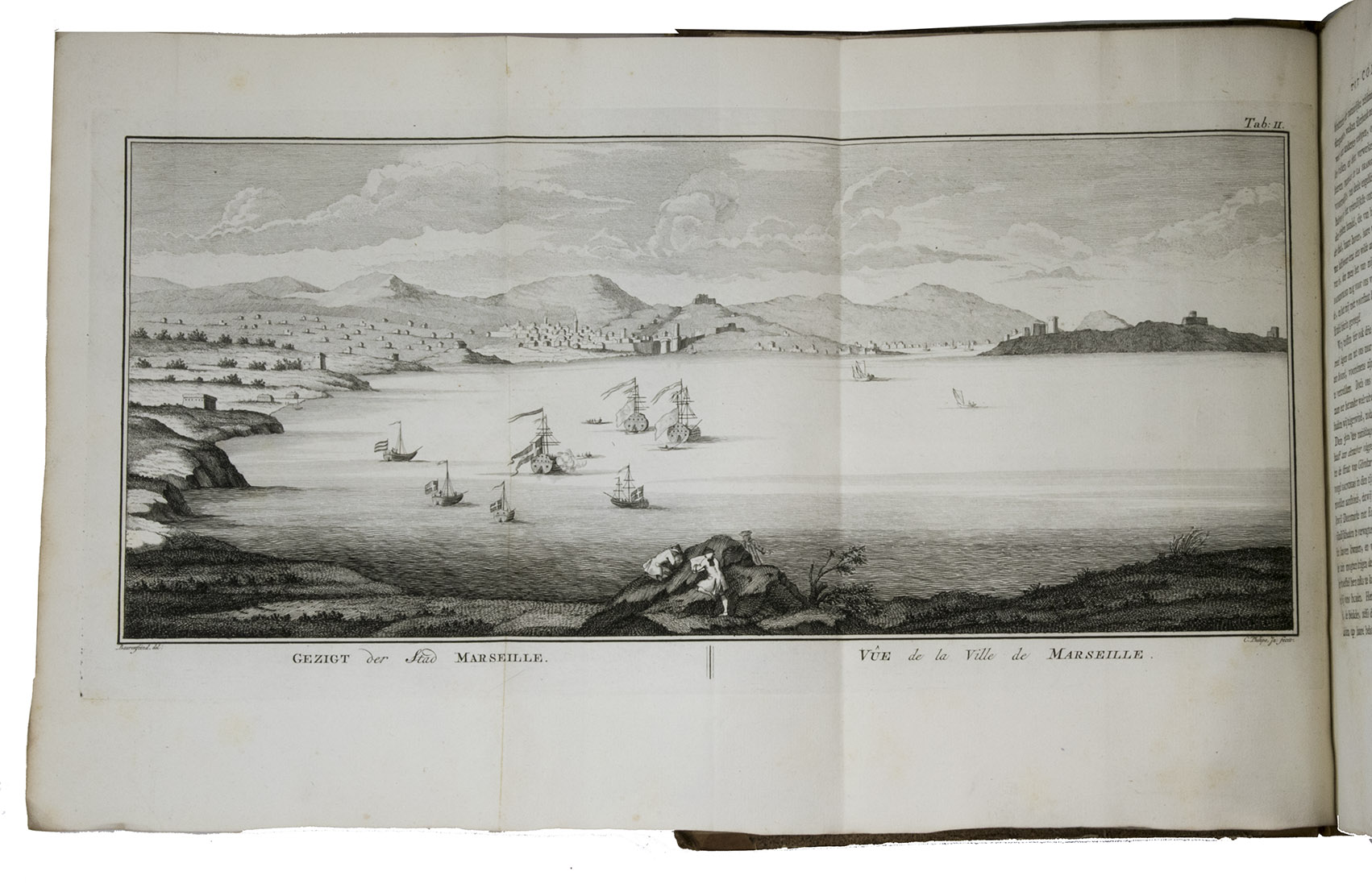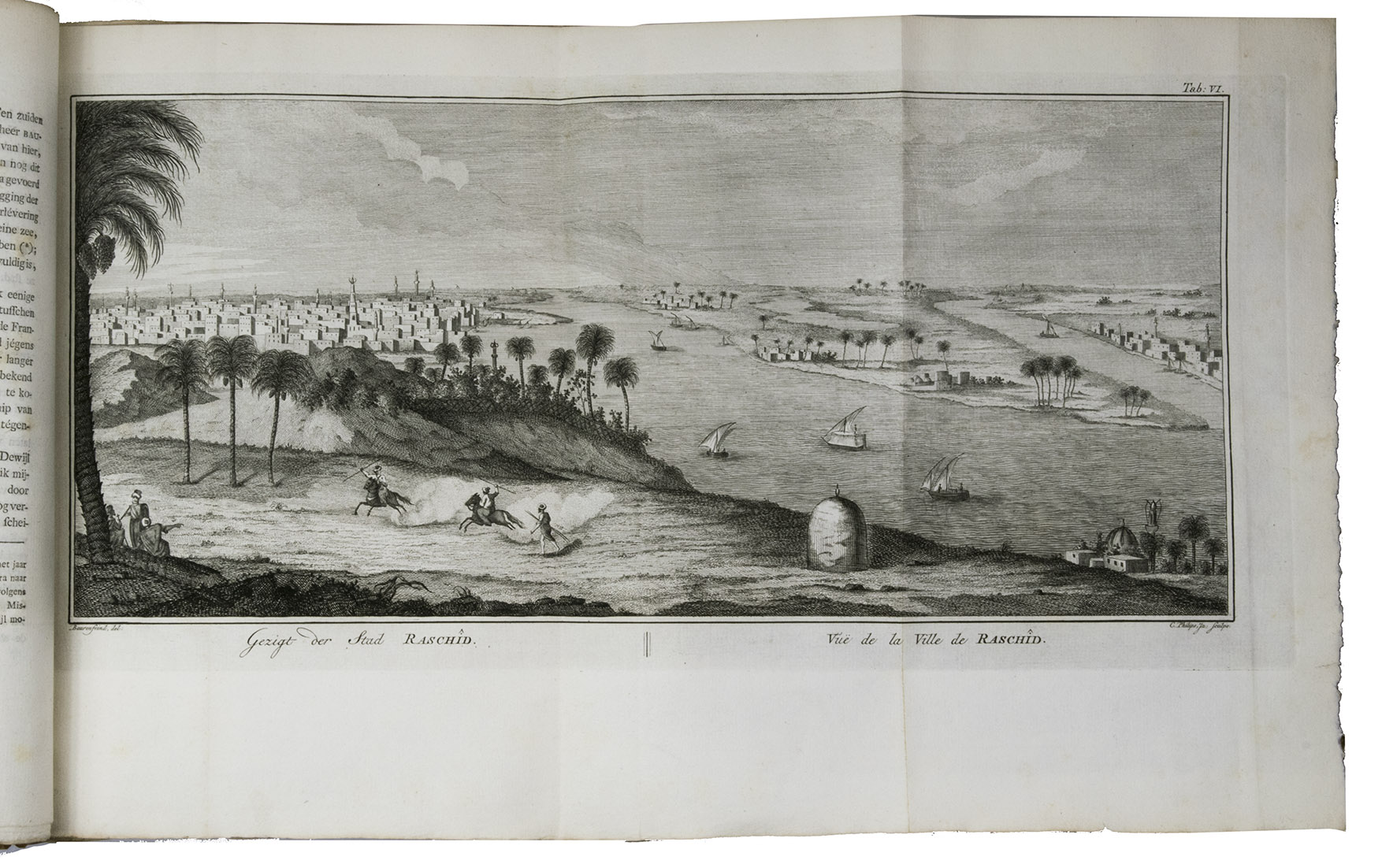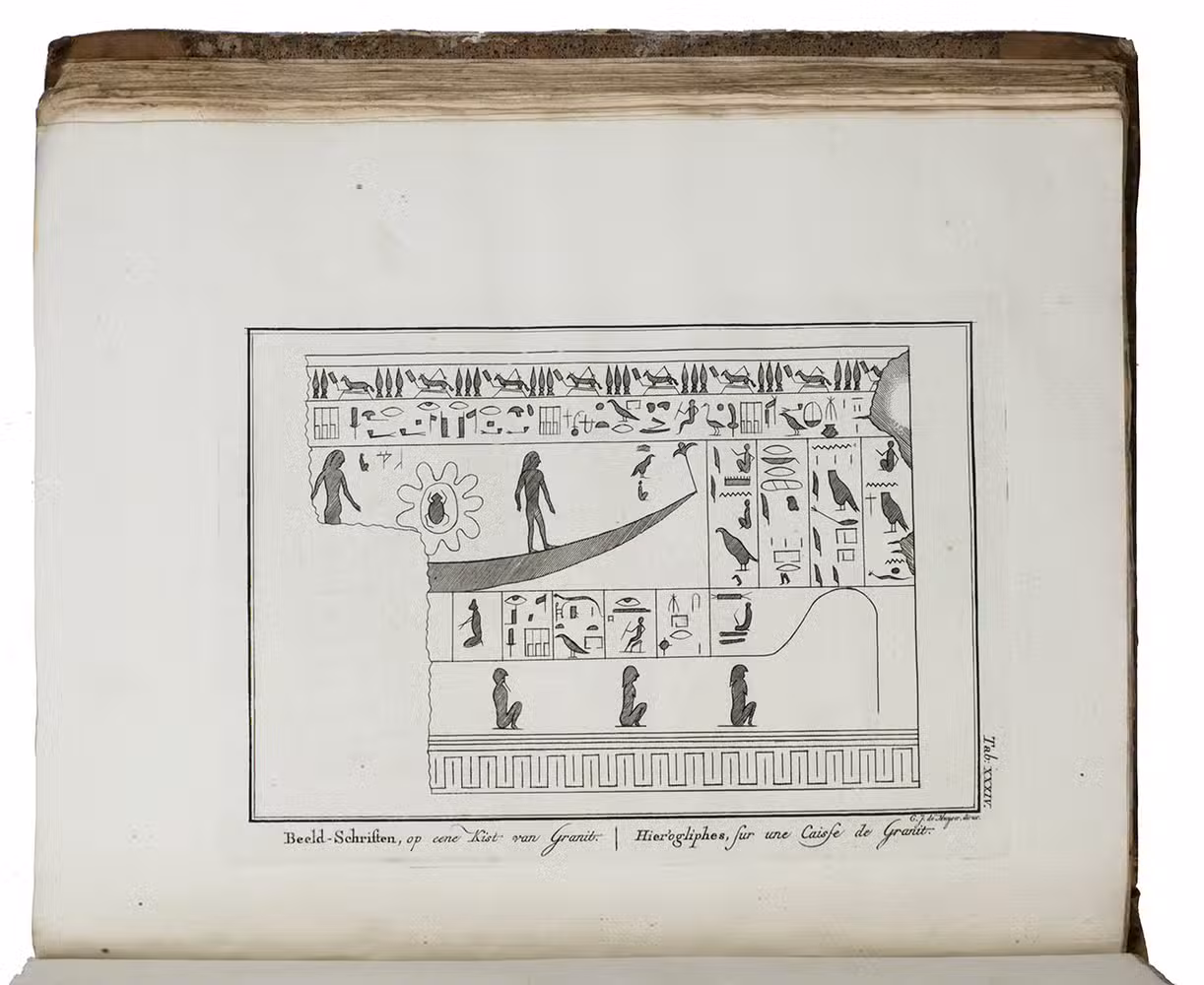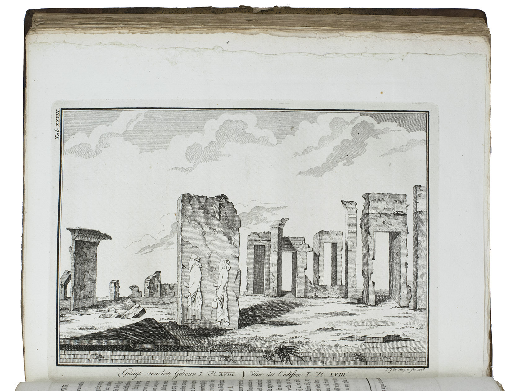 Amsterdam, S.J. Baalde; Utrecht, J. van Schoonhoven & Comp. (vol. 1) and Bartholomeus Wild (vol. 2) (colophons: printed in Utrecht by Johan Joseph Besseling), 1776-1780. 2 volumes. 4to (27.5 x 22 cm). With 2 engraved title-pages, each with the same vignette, 35 maps and plans (9 folding and the large map of Yemen coloured by hand in red and green outlines), 21 views (12 folding) and 69 other illustrations (19 folding) of people, sculptures and examples of ancient script, engraved by C. Philips, Th. and C.H. Koning, C.J. de Huyser, C.F. Fritsch, C. Brouwer and others. Half calf, sprinkled paper sides, gold-tooled spine with a red title label with gold lettering. VIII (I and III blank), [6], 484, [2]; [1], [1 blank], [1], [1 blank], [12], 455, [1] pp.
