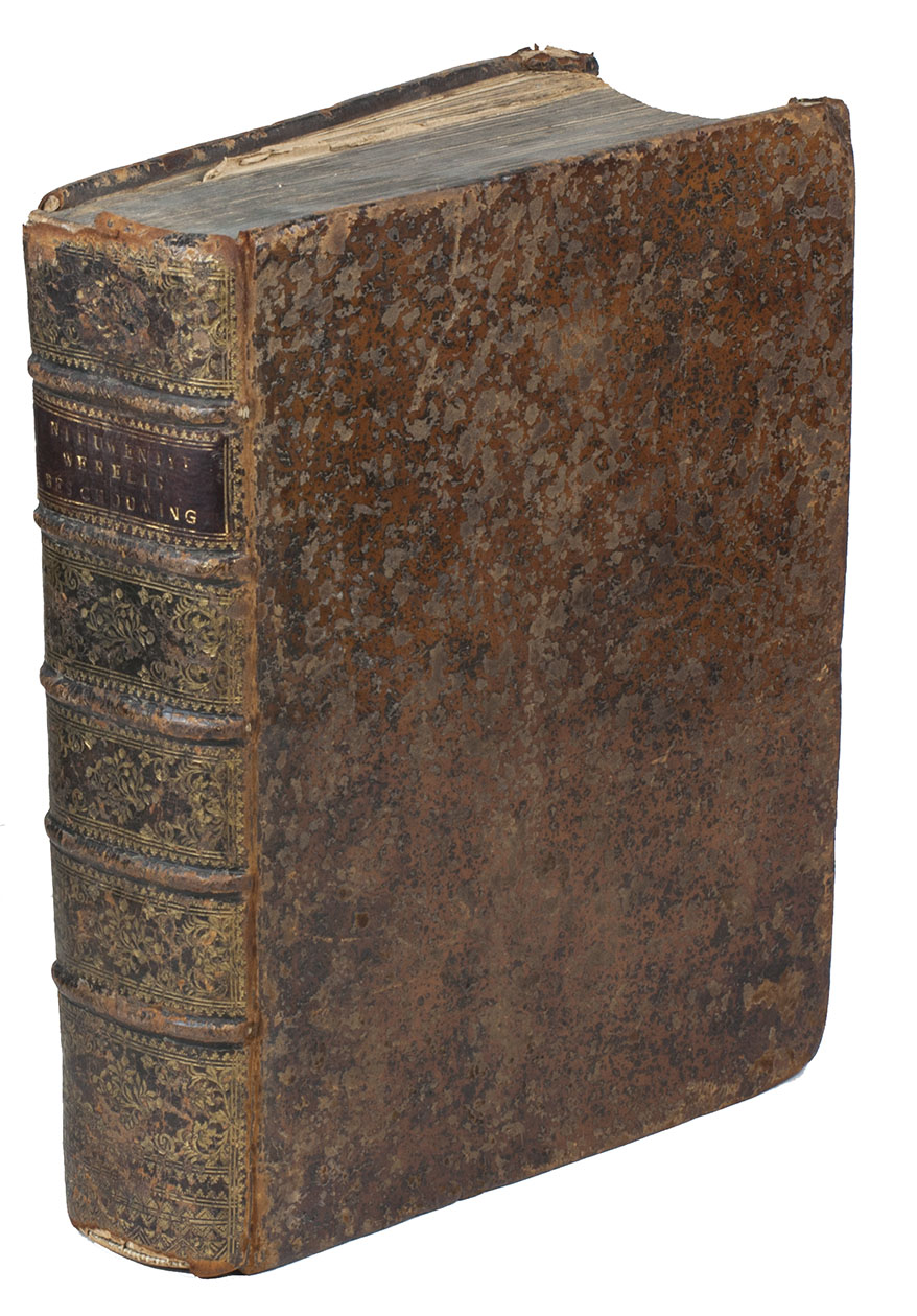Amsterdam, Joannes Pauli, 1740. Large 4to. With title printed in red and black, engraved frontispiece, portrait of the author, and 28 engraved folding plates. Contemporary mottled calf, gold-tooled spine. [8], 916, [18] pp.