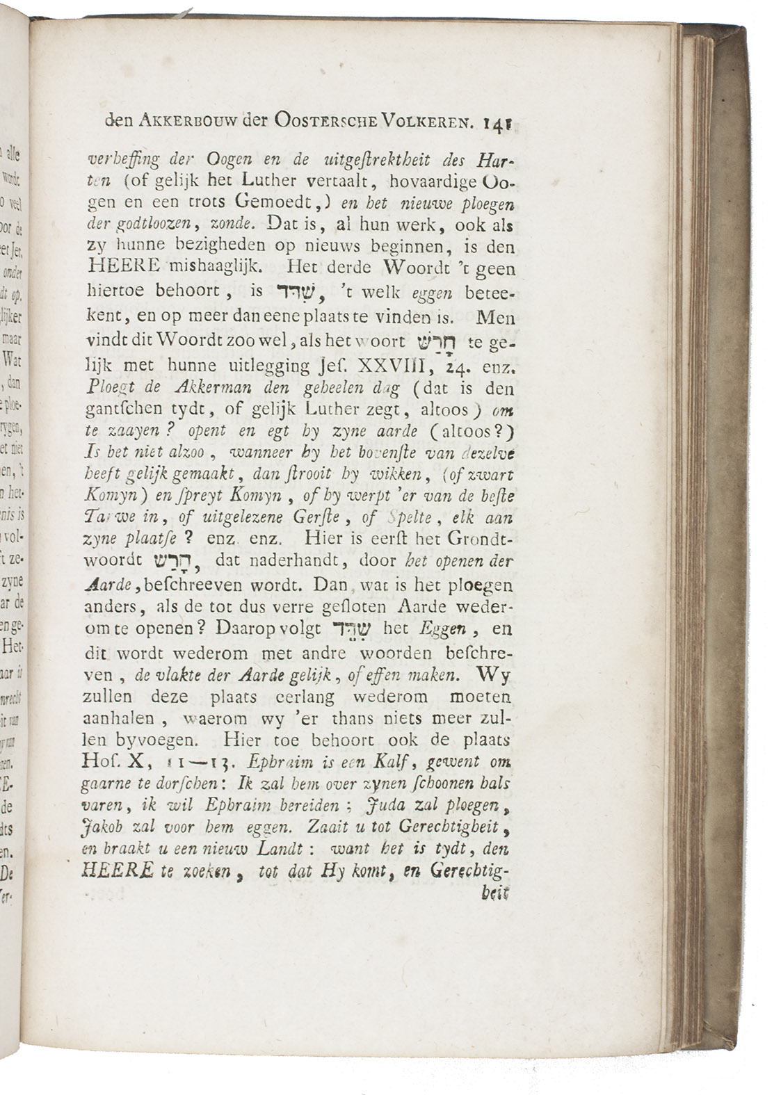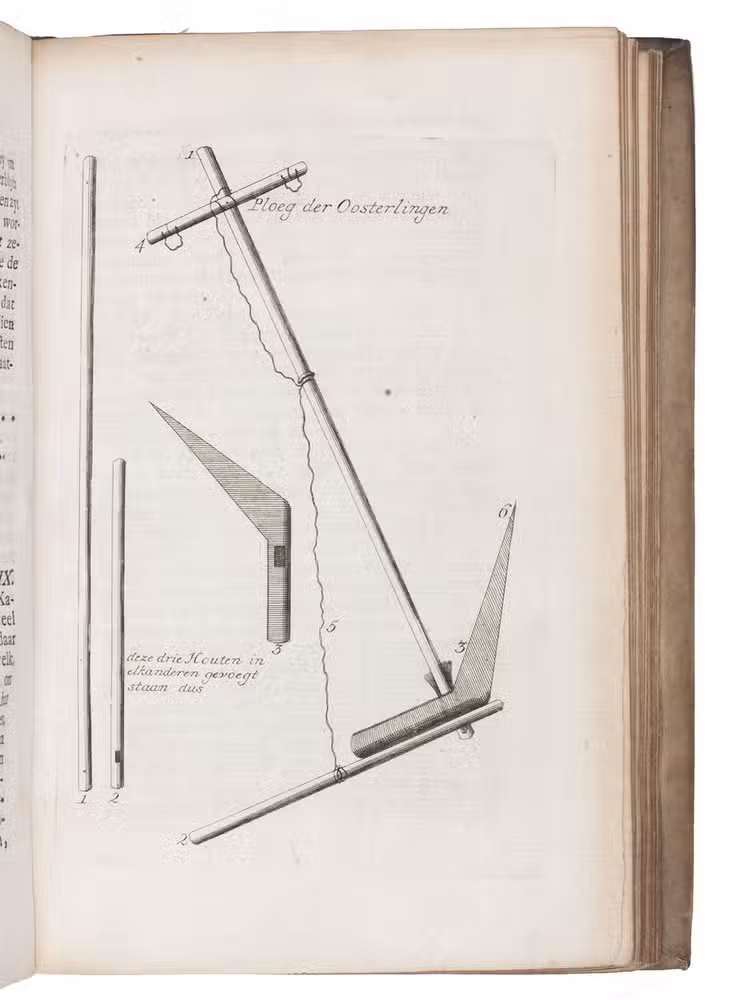 First edition of the Dutch translation of a work on agriculture in the Middle East, written by the German preacher Hermann Christian Paulsen (1718-1780). It covers the fertility of the soil, harvest season, plowing, sowing, etc. The plates show a plow and harvest and threshing methods. The author often refers to biblical passages and other writers (Chardin, Maundrell, Nieuhof and others) concerning agriculture and farming.