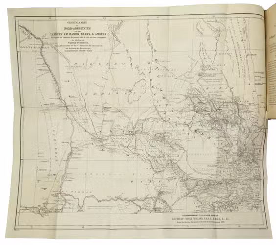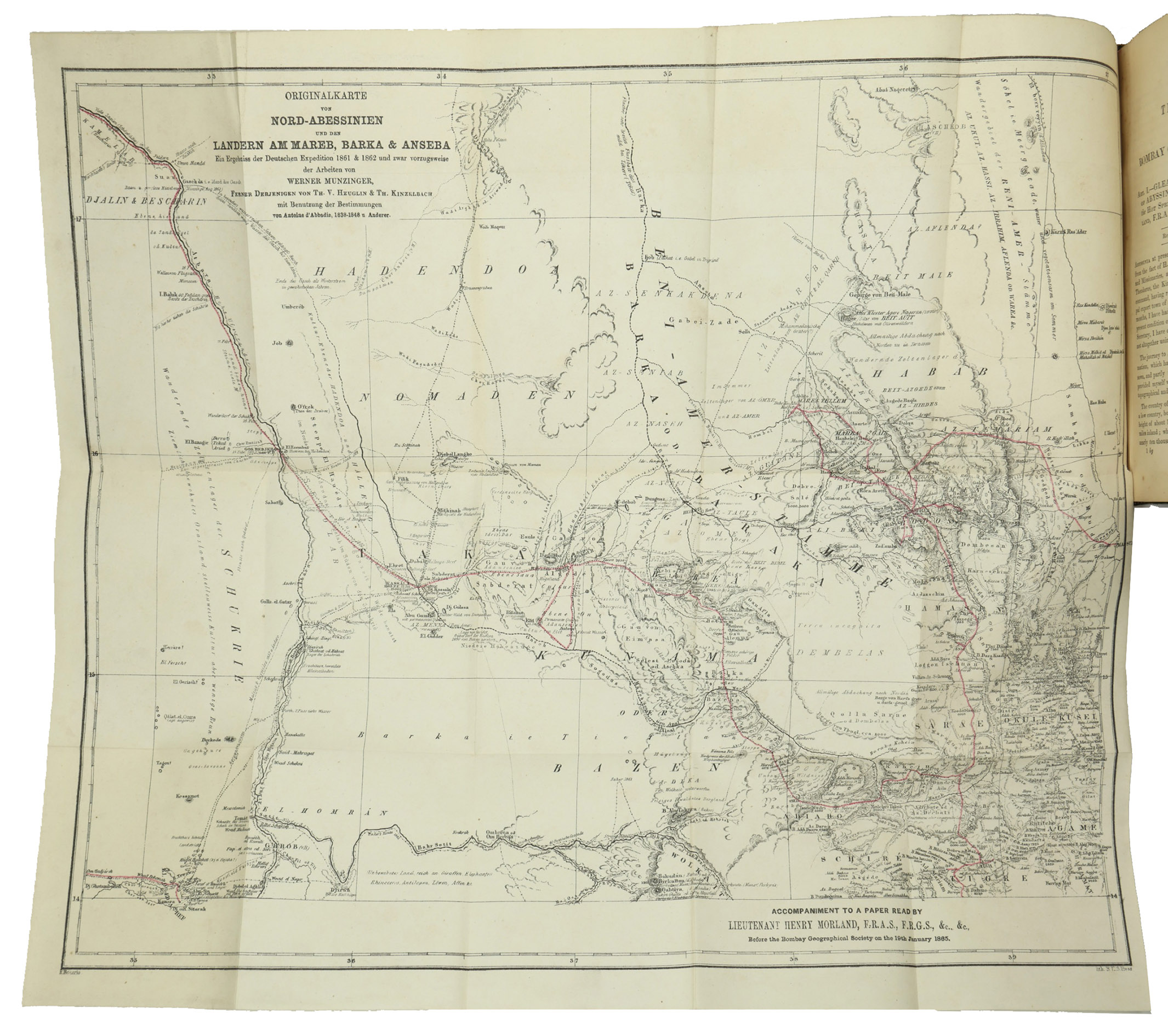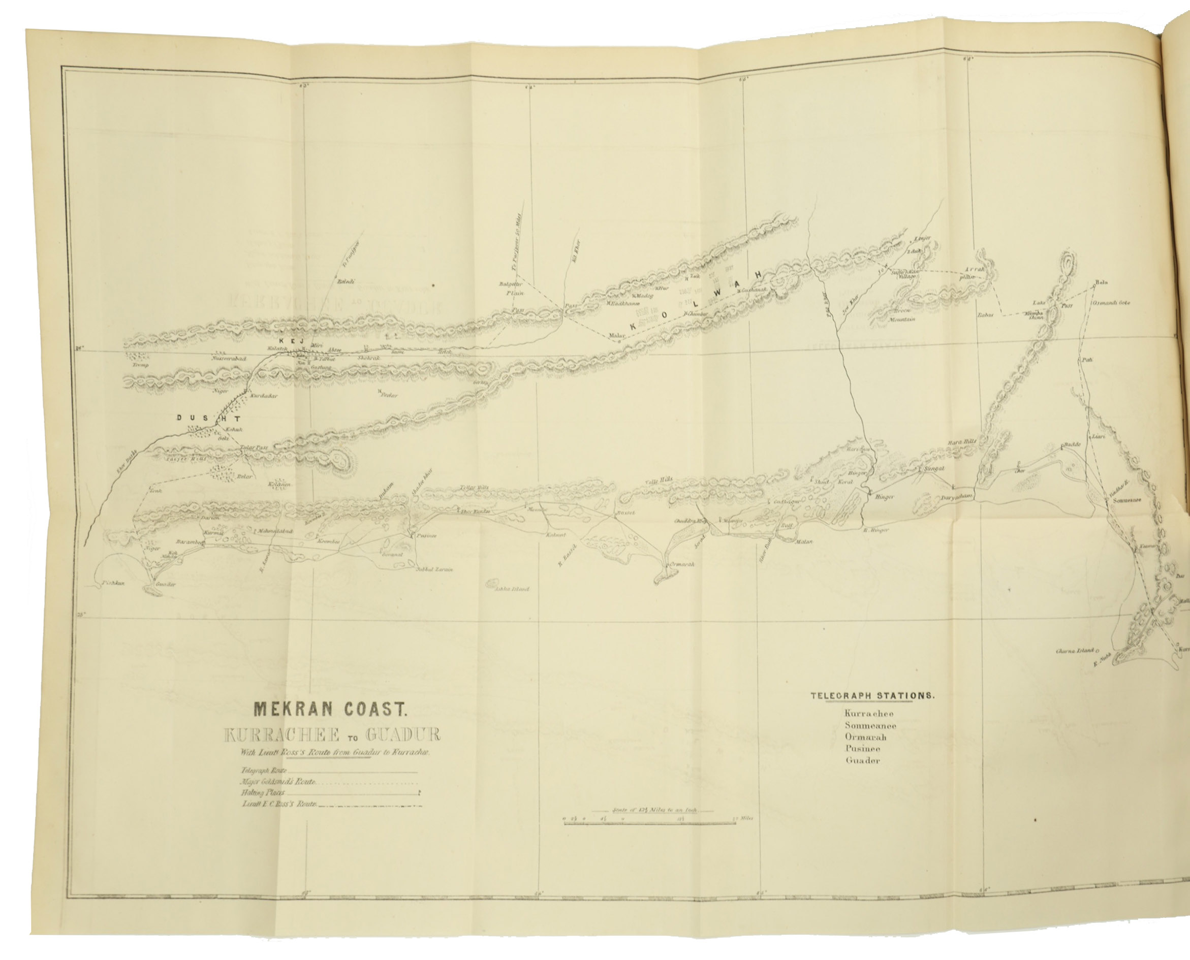 This rich and wide-ranging volume of the Transactions of the Bombay Geographical Society, in its first edition, is chiefly focused on the Ottoman Middle East and the Gulf region. It further contains essays on the Makran Coast, Red Sea littorals, and an overland journey from Baghdad to Istanbul. Though several institutions hold runs of the Transactions, even individual volumes are scarce in commerce. We cannot find any examples of this volume in auction records or bookseller catalogues.