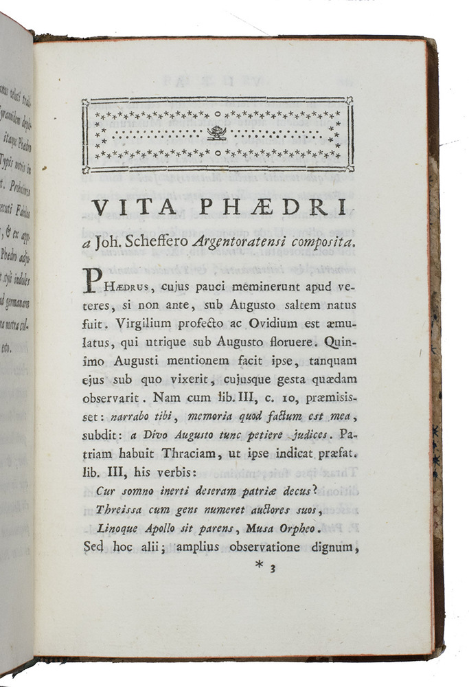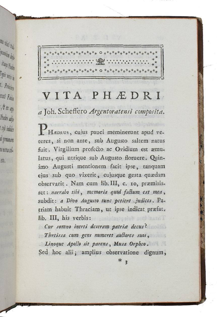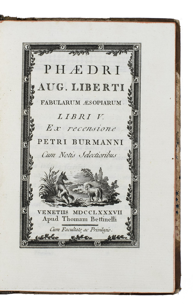 Nice and well-printed Venice edition of the Phaedrus and additional fables, based on the Burman recension.