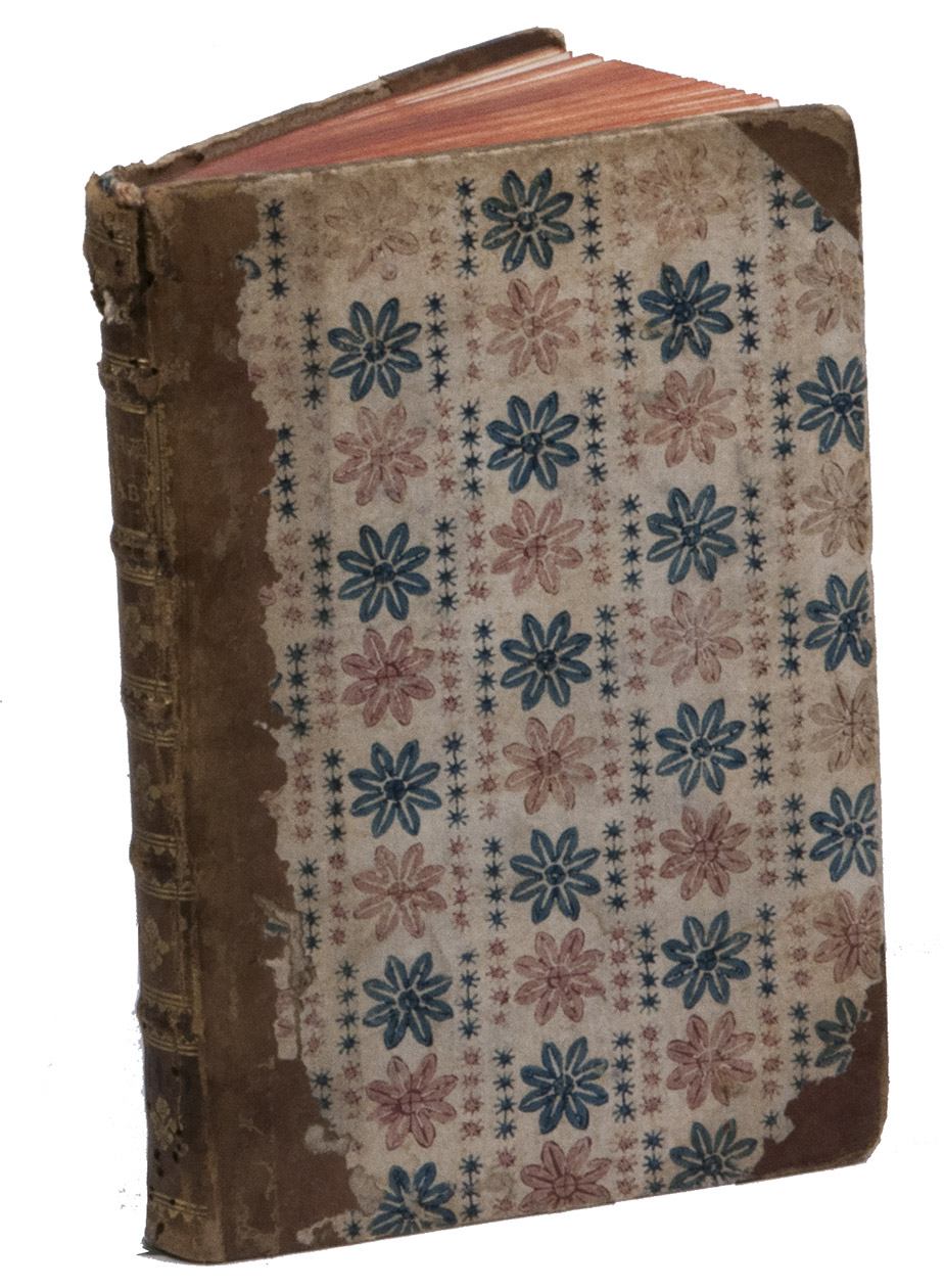 Venice, Thomas Bettinelli, 1787. 8vo. With engraved frontispiece of Mercure addressing Aesop by P. Scataglia after Etienne Fessard and Louis Durand, title in an ornamental engraved frame with the illustration for the first fable (the wolf and the lamb) by the same artist, some woodcut typographical head- and tailpieces. Half calf, ribbed spine gilt in compartments, lettered in gold, stamped ornamental paper over boards, red painted edges. [4], XXXII, 151 pp.
