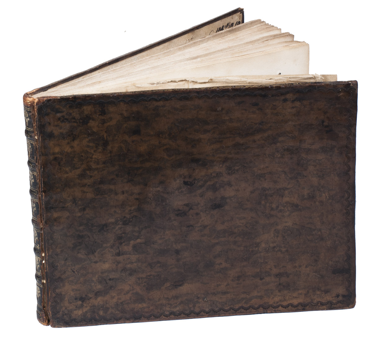 Amsterdam, Bernard Picart, 1729. Oblong 4to. With 25 engraved vignettes and 2 engraved initials on 25 leaves. Contemporary blind-tooled mottled calf, gold-tooled spine, gold-tooled turn-ins. 8 pp., [25] ll.
