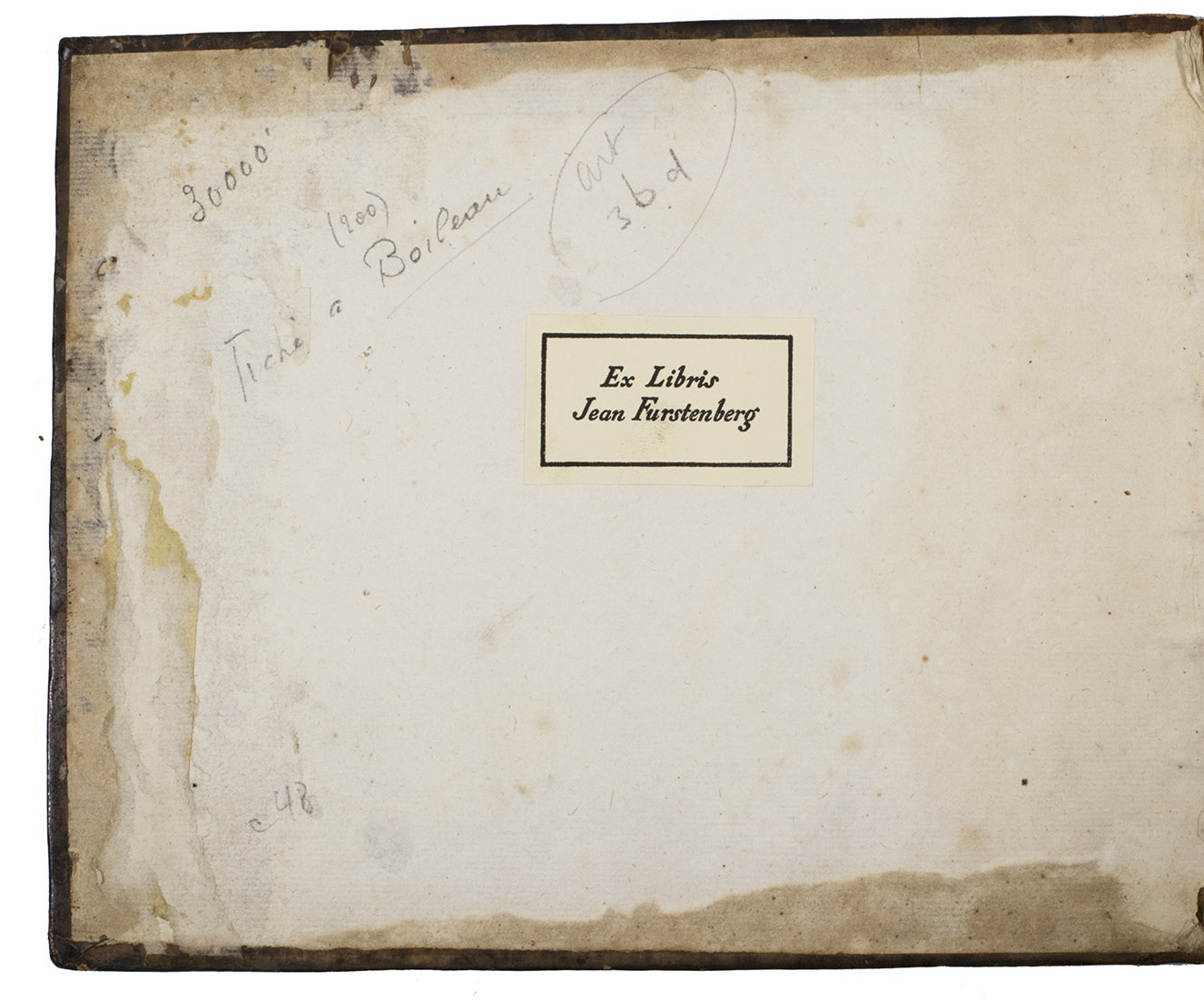 Bookplate of the famous collector Jean Furstenberg on front paste-down. Front hinge broken. Minor foxing. Otherwise in good condition. Rijksmuseum RP-P-OB-51.977; WorldCat (1 copy); not in Lewin, cf. Lewine, p. 73, for the Boileau-Despréaux vignettes..