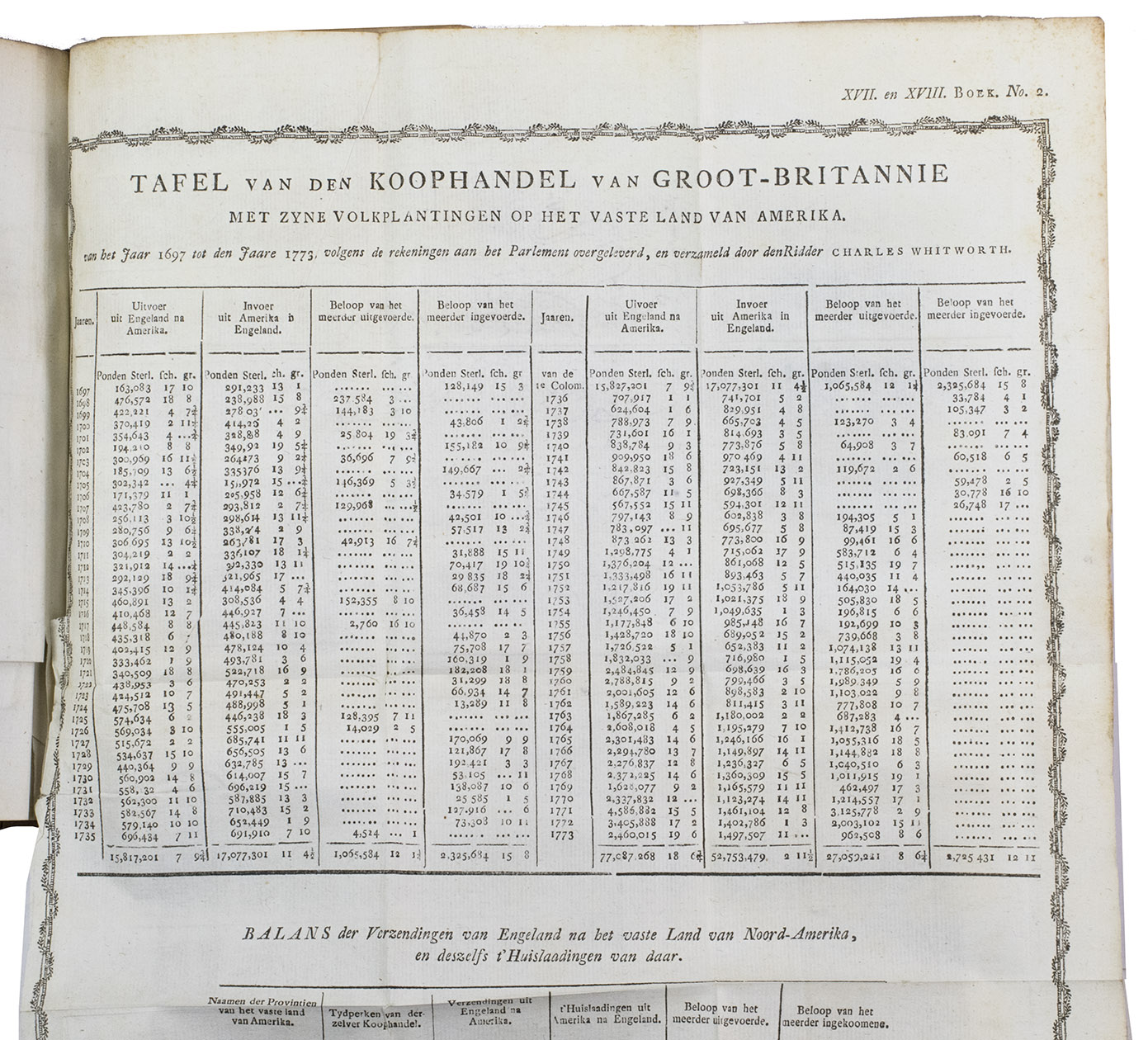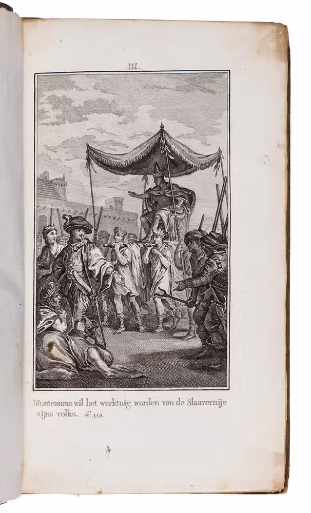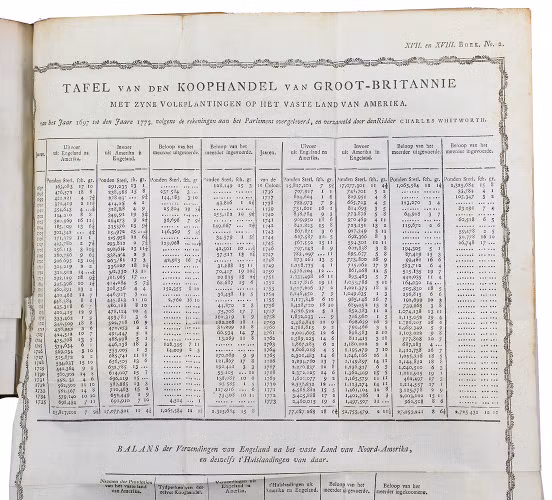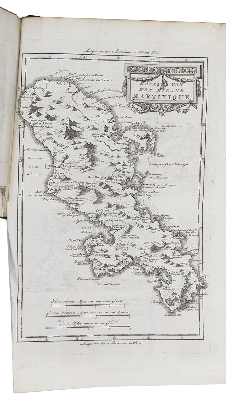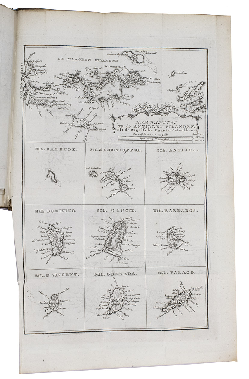 Second copy located, of the second edition of the Dutch translation of an extensive and widely published radical critique of European overseas expansion, written by the French author Guillaume Thomas François Raynal (1713-1796) in collaboration with figures associated with the Encyclopédie, above all the famous French philosopher Denis Diderot (1713-1784). The contents are partly based on travel accounts and data gathered from an unprecedented number of government documents, furnished by a network of officials and informants in all the colonial powers.