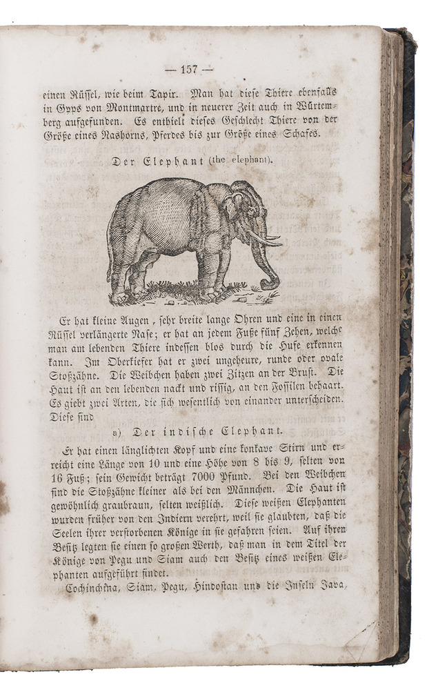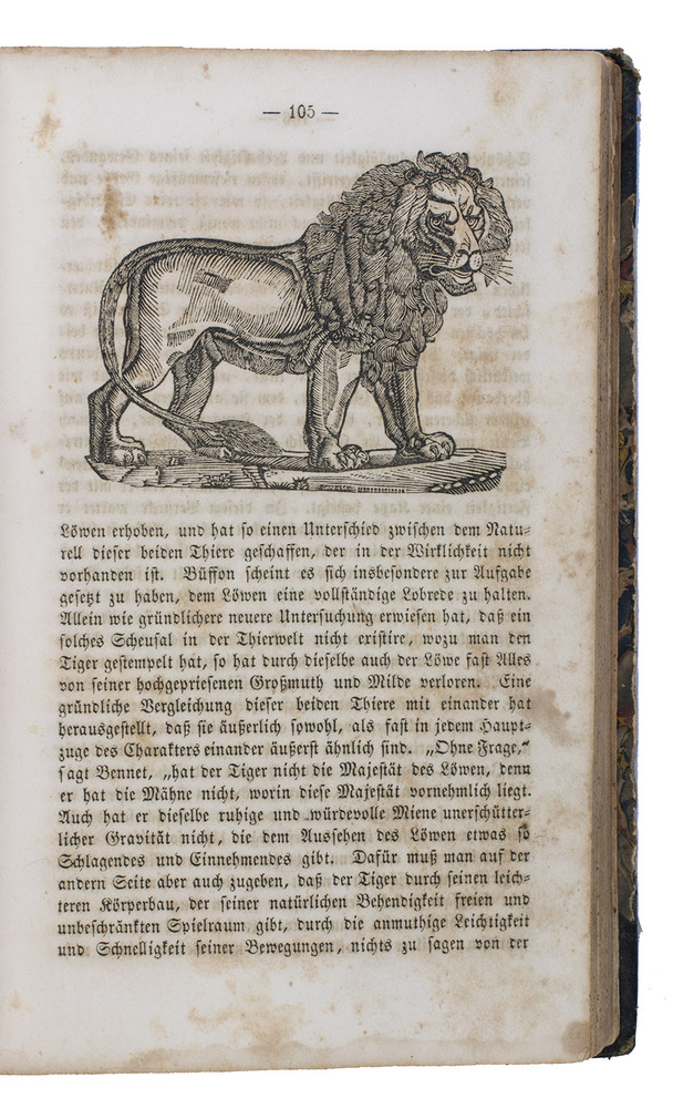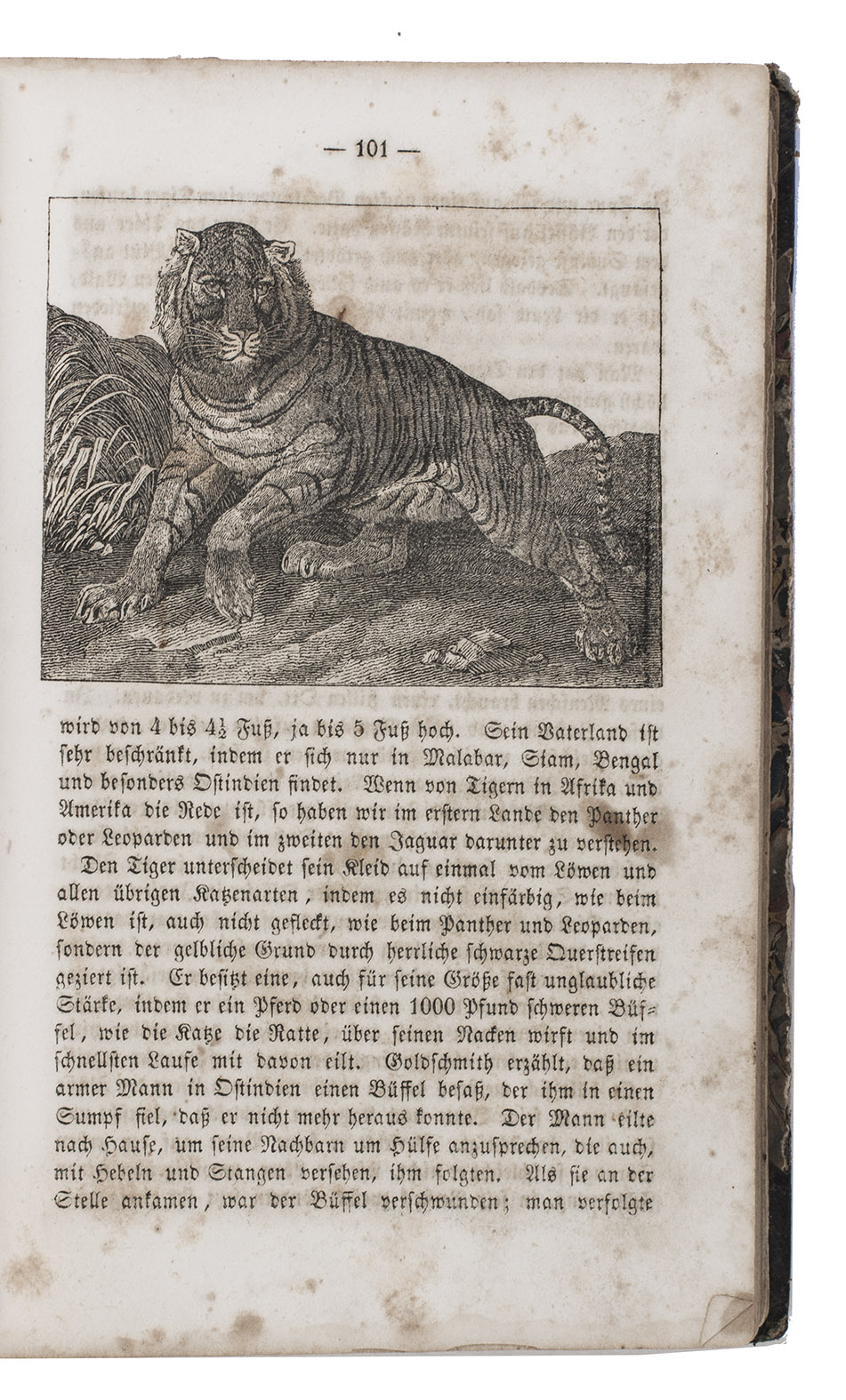 With some stamps on flyleaf. Browned and heavily foxed, with some occasional marginal waterstains and tears, not affecting text or illustration, pp. 264-265 slightly loose. Fair copy. Not in BMC NH; Nissen; Wood.