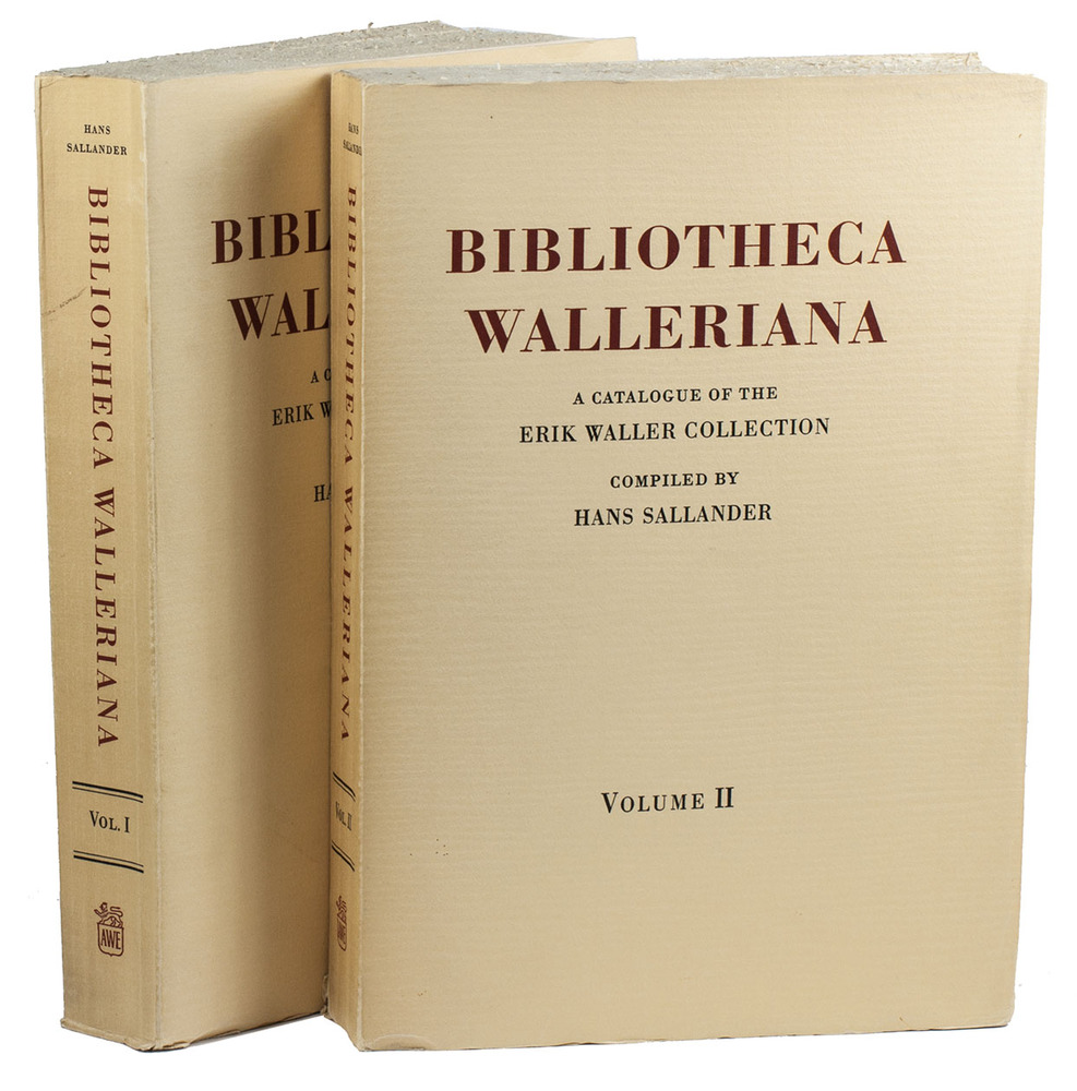 "It is hardly an exaggeration to say that this collection, in the fields it covers, is unparalleled in modern times. It comprises practically all major works published in the realm of medicine before 1800, as well as a highly representative selection of literature on the subject. While the famous collection of Sir William Osler and Dr Harvey Cushing each comprise some 8,000 items, Dr. Wallers includes nearly 21,000, and it is also far superior in quality." (T. Kleberg in the preface).