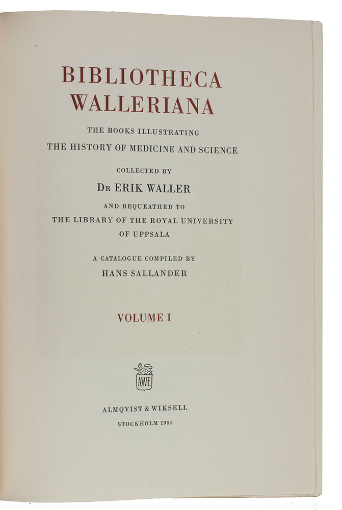 Bibliotheca Walleriana the books illustrating the history of medicine and science collected by Dr. Erik Waller and bequeathed to the library of the Royal University of Uppsala.