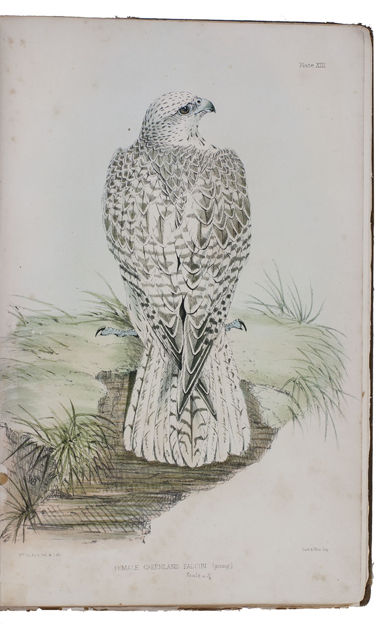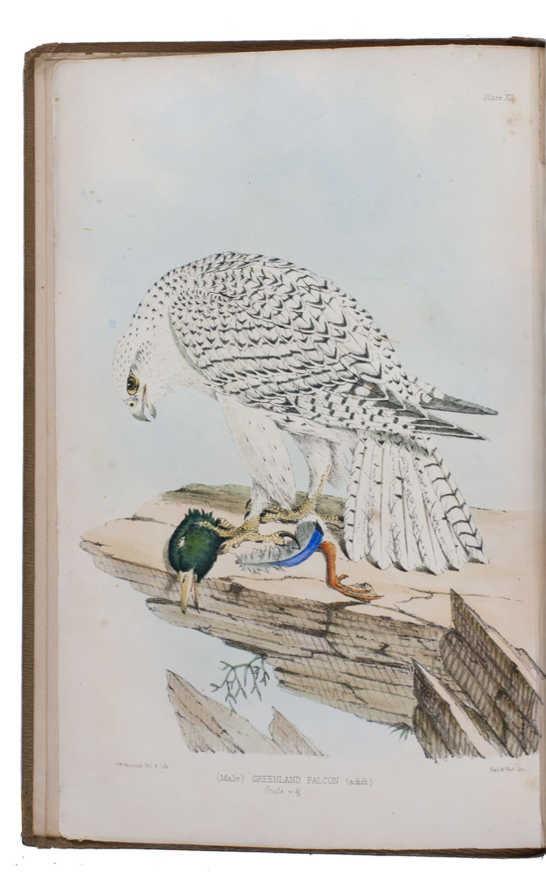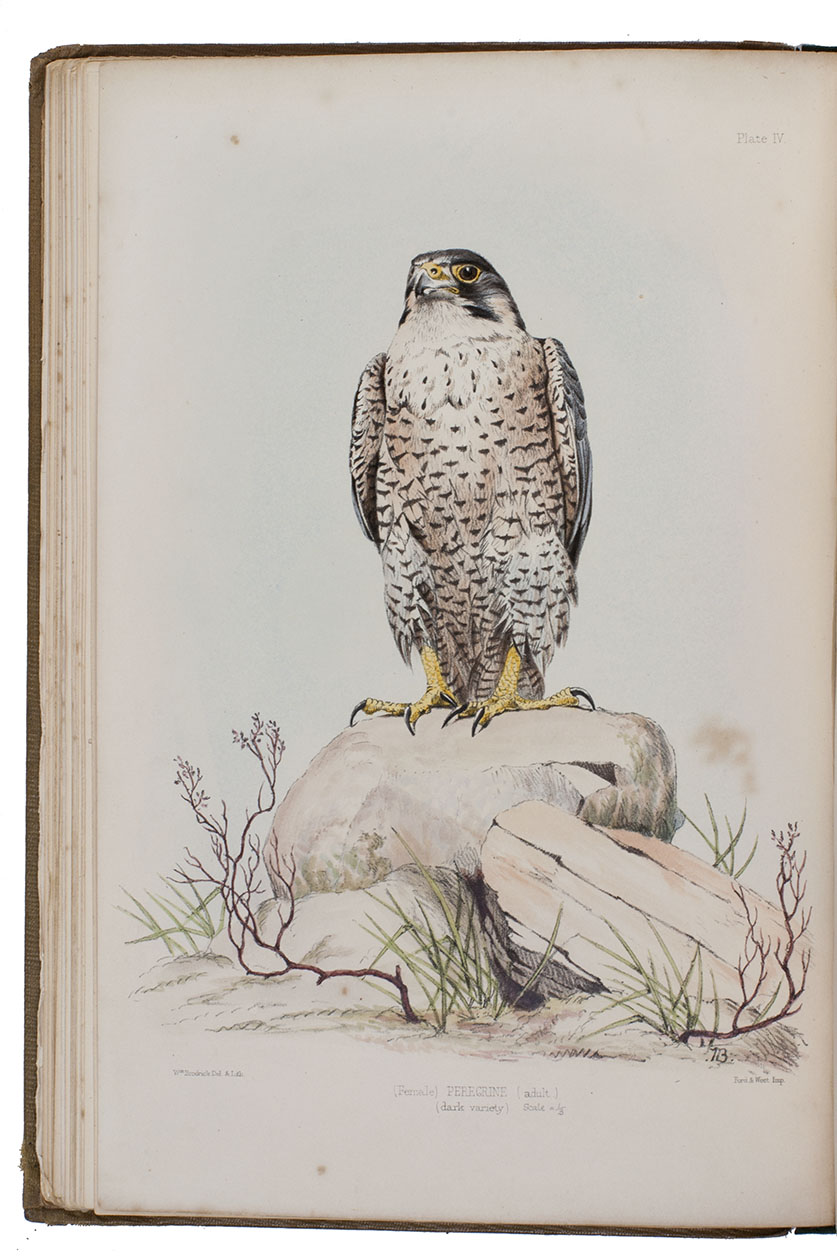 London, John van Voorst, 1855. 4to (29 x 19.5 cm). With 24 hand-coloured lithographed plates by William Brodrick. Original publishers blind- and gold-blocked cloth, front board with title and large illustration of a falcon. VII [1 blank], 147 [1 blank] pp.