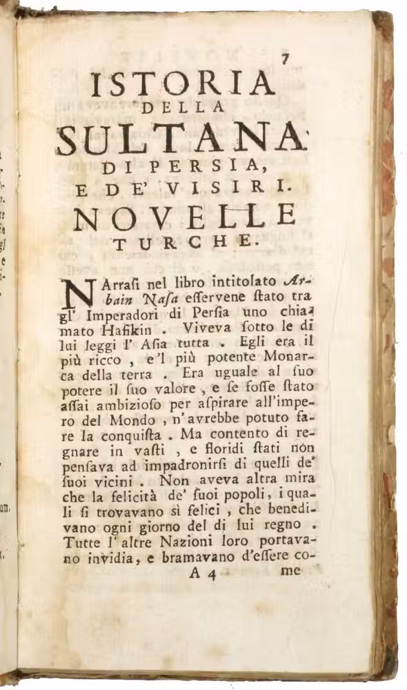 Istoria della Sultana di Persia. Novelle turche. Composte in lingua turca da Chéc Zadé e tradotto dal francese nellidioma italiano.