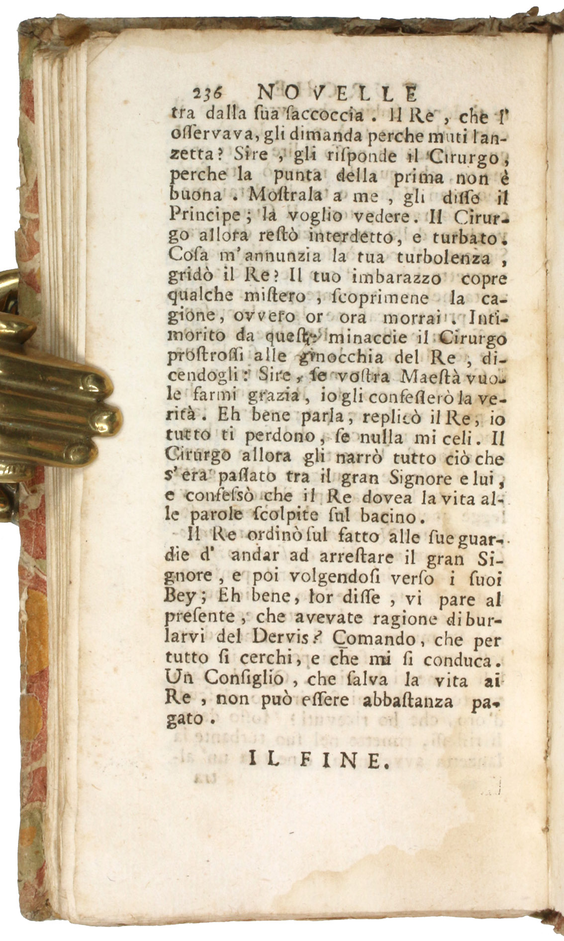 Venice, Andrea Mercurio, 1752. 12mo. Marbled paper with a manuscript label on the spine. 236, [4] pp.