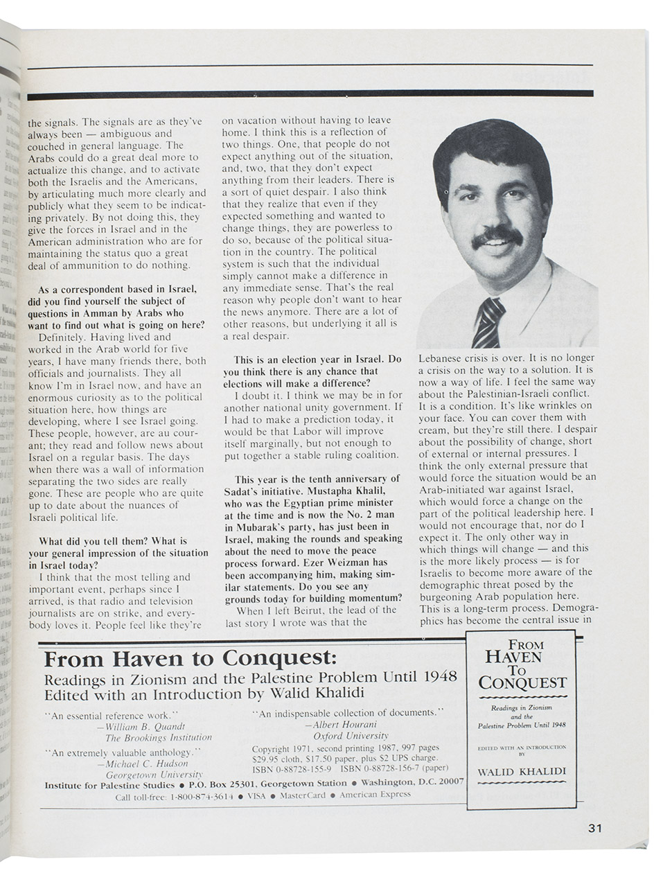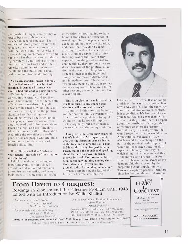 Tel Aviv, Tatzpiot Ltd (under auspices of Jewish-Arab Institute at Givat Haviva), 1986. 9 volumes. Original wrappers, staplebound. Various pagination.