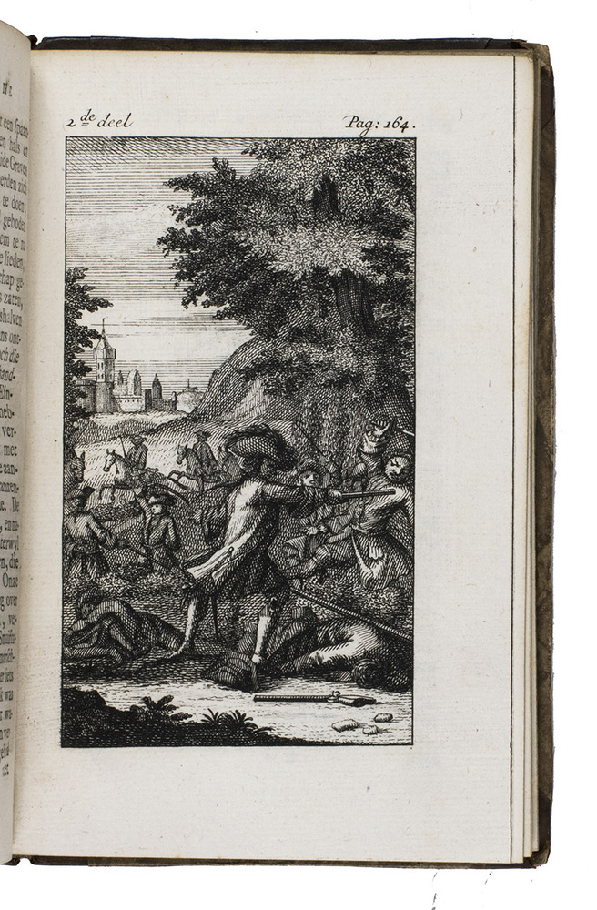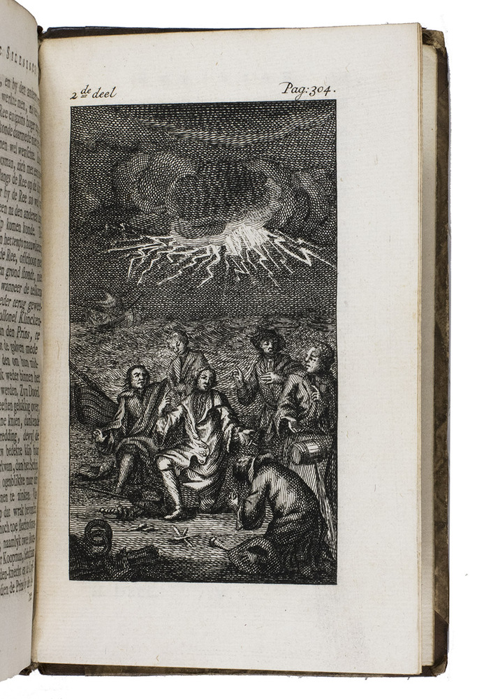 Amsterdam, S. van Esveldt 1755, 2 volumes. With a frontispiece by J. C. Philips and 7 full-page engraved plates. Contemporary gilt half-calf, dark brown moroccan letterpiece to spine. [12], 267, [1]; [4], 308 pp.