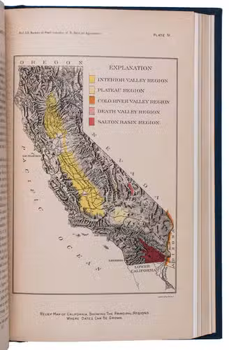 (2) SWINGLE, Walter Tennyson. The date palm and its utilization in the southwestern states.Washington, Government printing office, 1904. With a wood engraved device of the United States department of agriculture on title-page, 21 (of 22) plates (including 2 chromolithographed maps) and 10 illustrations in text.