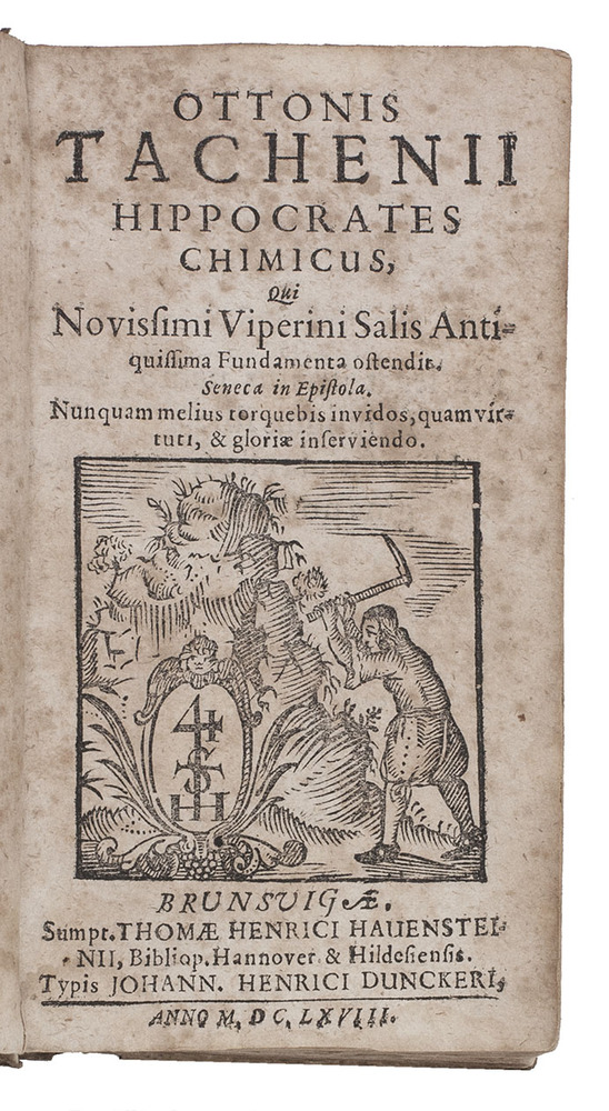 With: (2) TACHENIUS, Otto. Antiquissimae Hippocratiae medicinae clavis manuali experiential in naturae fontibus elaborate, quaper ignem & aquam inaudita method, occulta naturae, & artis, compendiosa operandi ratione manifesta fiunt, dilucidè aperiuntur. Seneca in epistola.