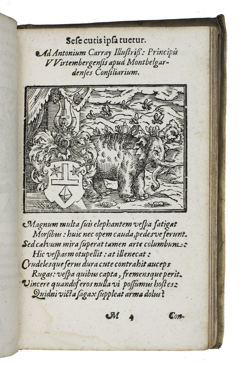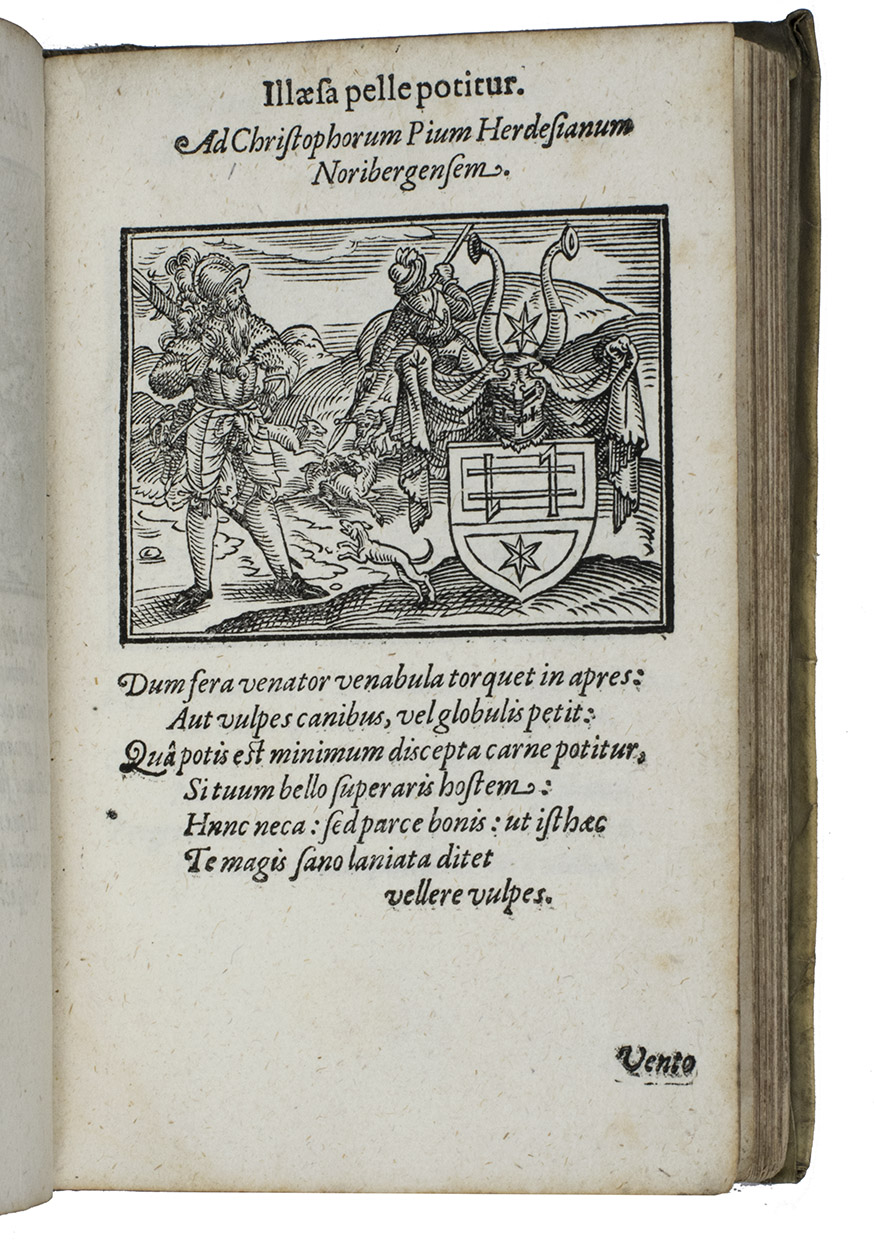 Nürnberg, Simon Halbmayer, 1617. With Halbmayers woodcut globe, bird and book device on the title-page, 116 emblematic woodcuts, in most cases incorporating a coat of arms, woodcut decorated initials.