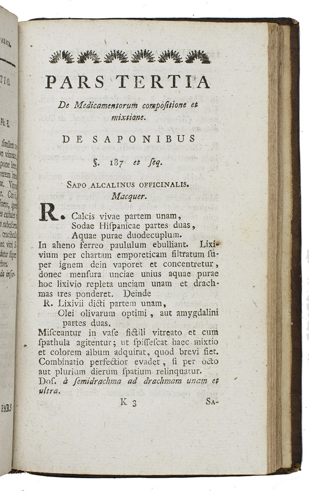 Head and foot of spine slightly worn. New endpapers. Otherwise in very good condition. João Rui Pita, "La pharmacie au Portugal (1772-1836)", in: Revue dhist. de la pharmacie, 1998, pp. 54-56.