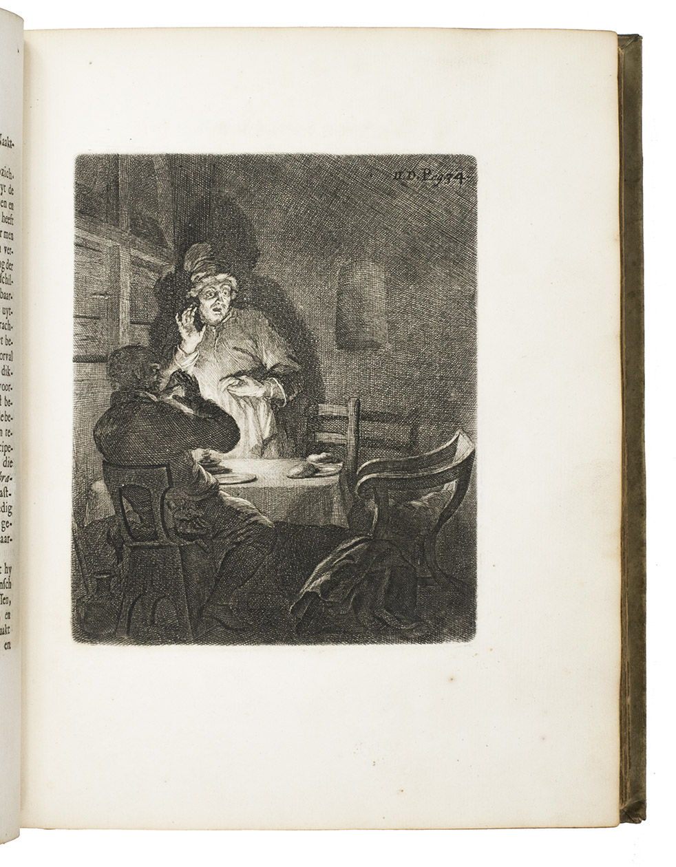 The first three parts were all published in 1729; the fourth - 40 years later - is mainly devoted to the painters from the Art Academy at The Hague. All 40 plates with artists' portraits, the frontispiece, 2 other portraits and the night scene are in the first 3 volumes (the later volume 4 has no plates). The lavish vignettes throughout the volumes are worth mentioning as well, mostly executed by Picart and apparently made for the present publication.