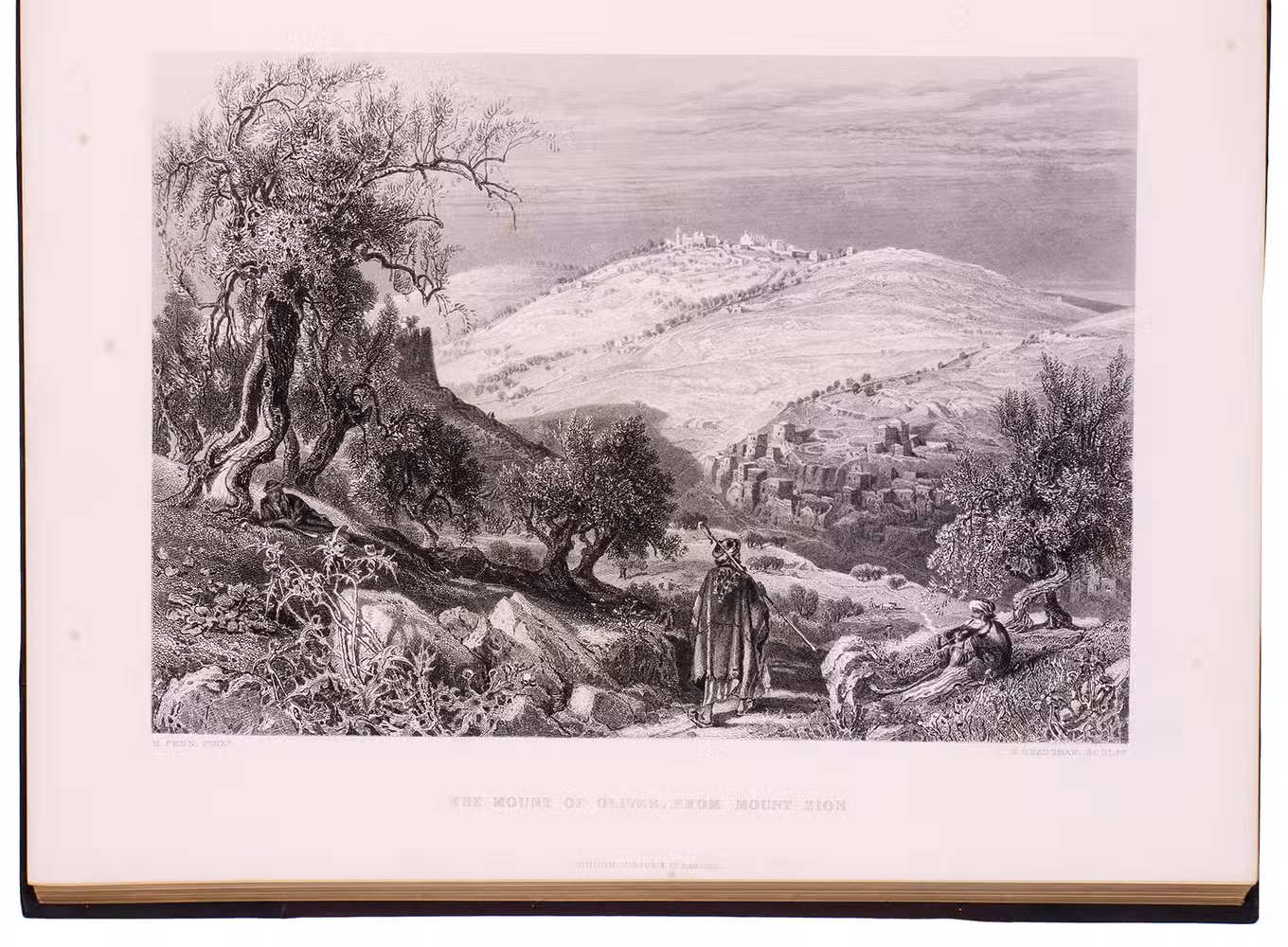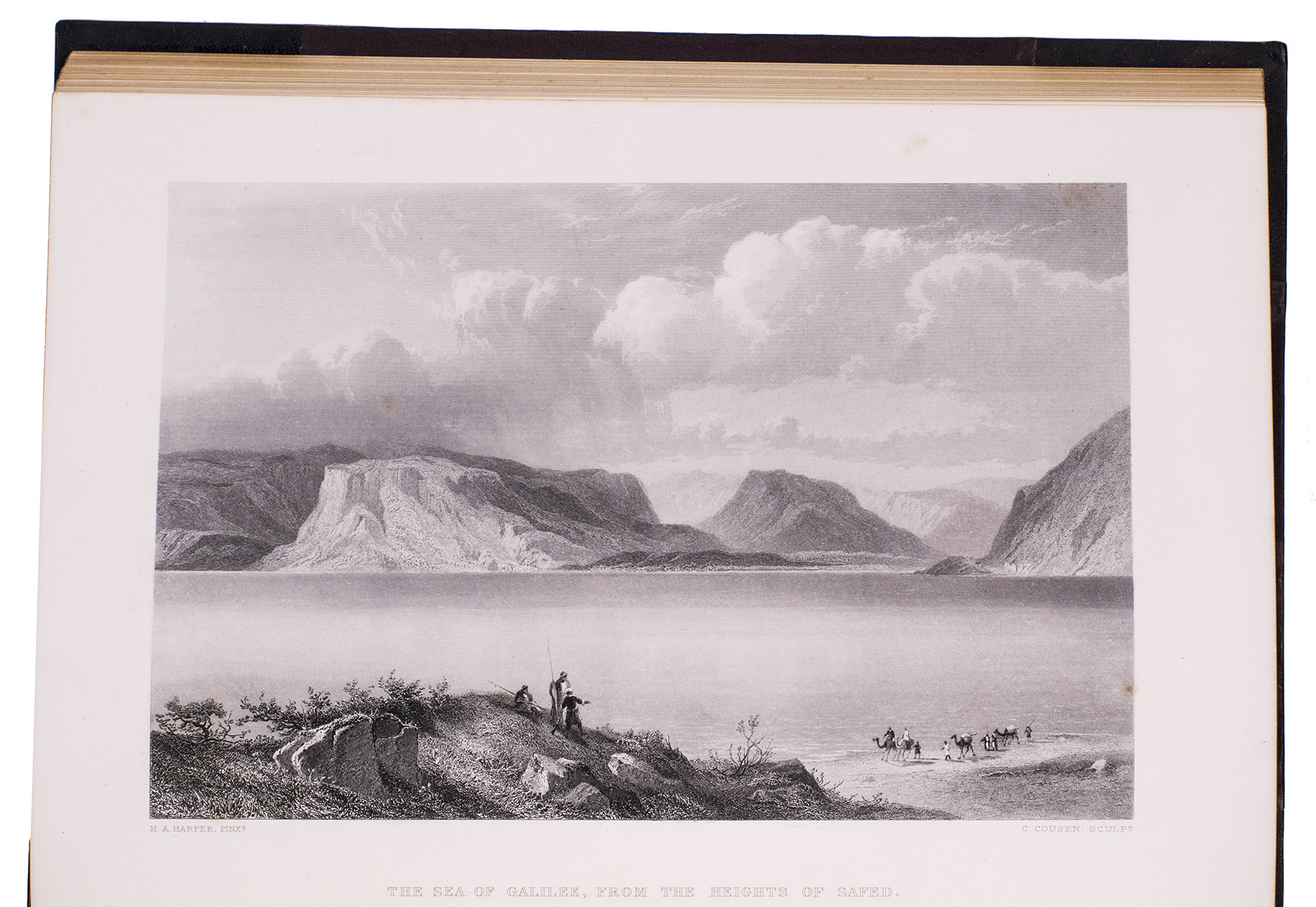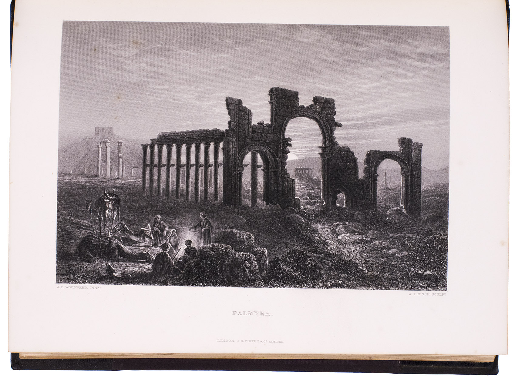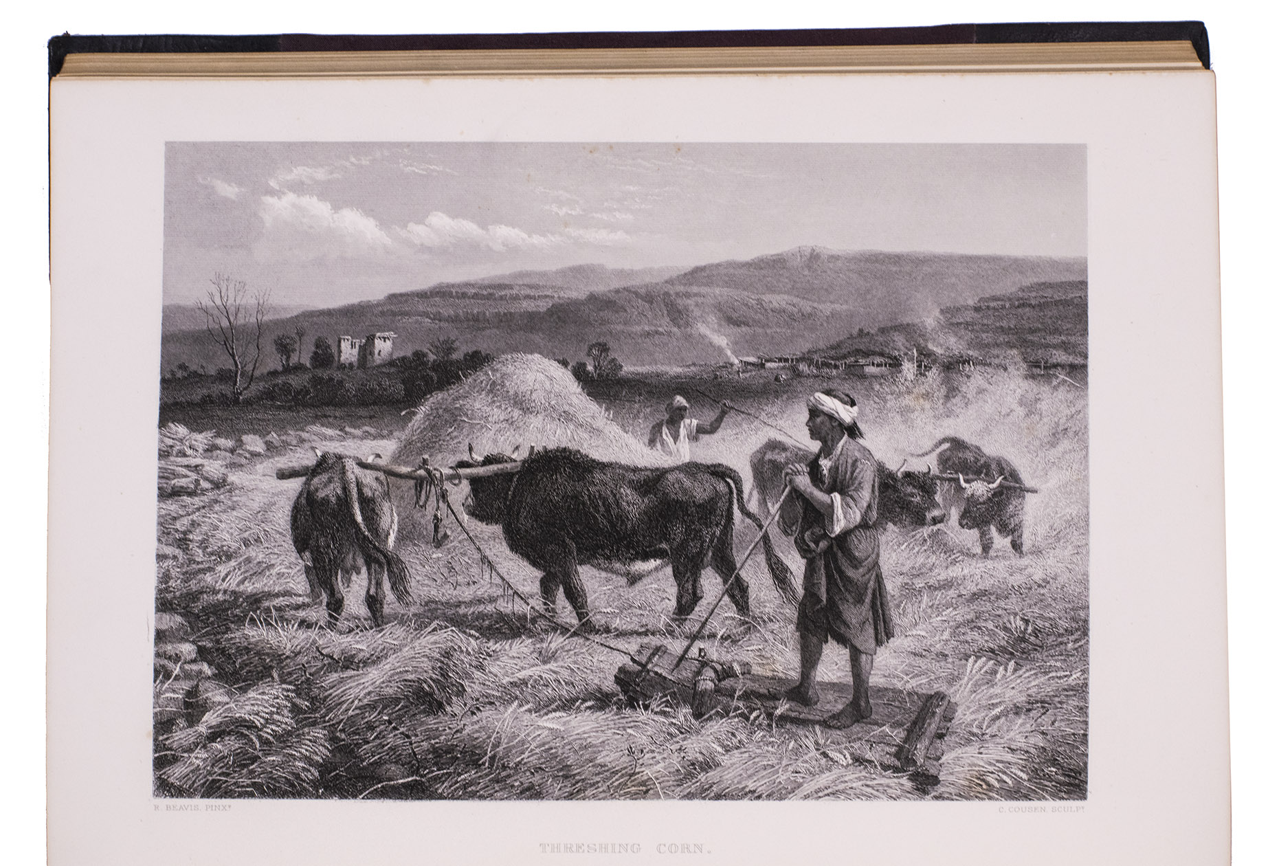 London, Virtue and Co., [ca. 1870]. 4 volumes. Large 4to (33 x 25 cm). With 4 title-pages in red and black, each with a different large steel-engraved vignette, 38 steel-engraved plates (including 4 different frontispieces), 2 double-page engraved maps of Egypt and Sinai, printed in brown, and 576 wood-engravings on integral leaves, many full-page. Contemporary half sheepskin. [2], X, 240; [2], VI, 240; [2], IV, 240; [2], IV, 236 pp.
